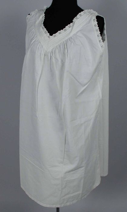 Roomwitte katoenen nachtjapon zonder mouwen, met vie...