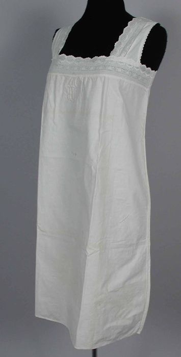 Witte onderjurk zonder mouw, knoopsluiting op de sch...