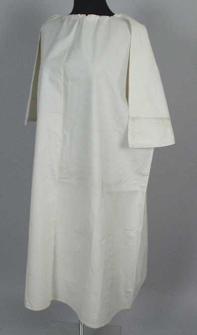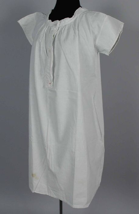 Halflang wit nachthemd, half doorgeknoopt met blinde...