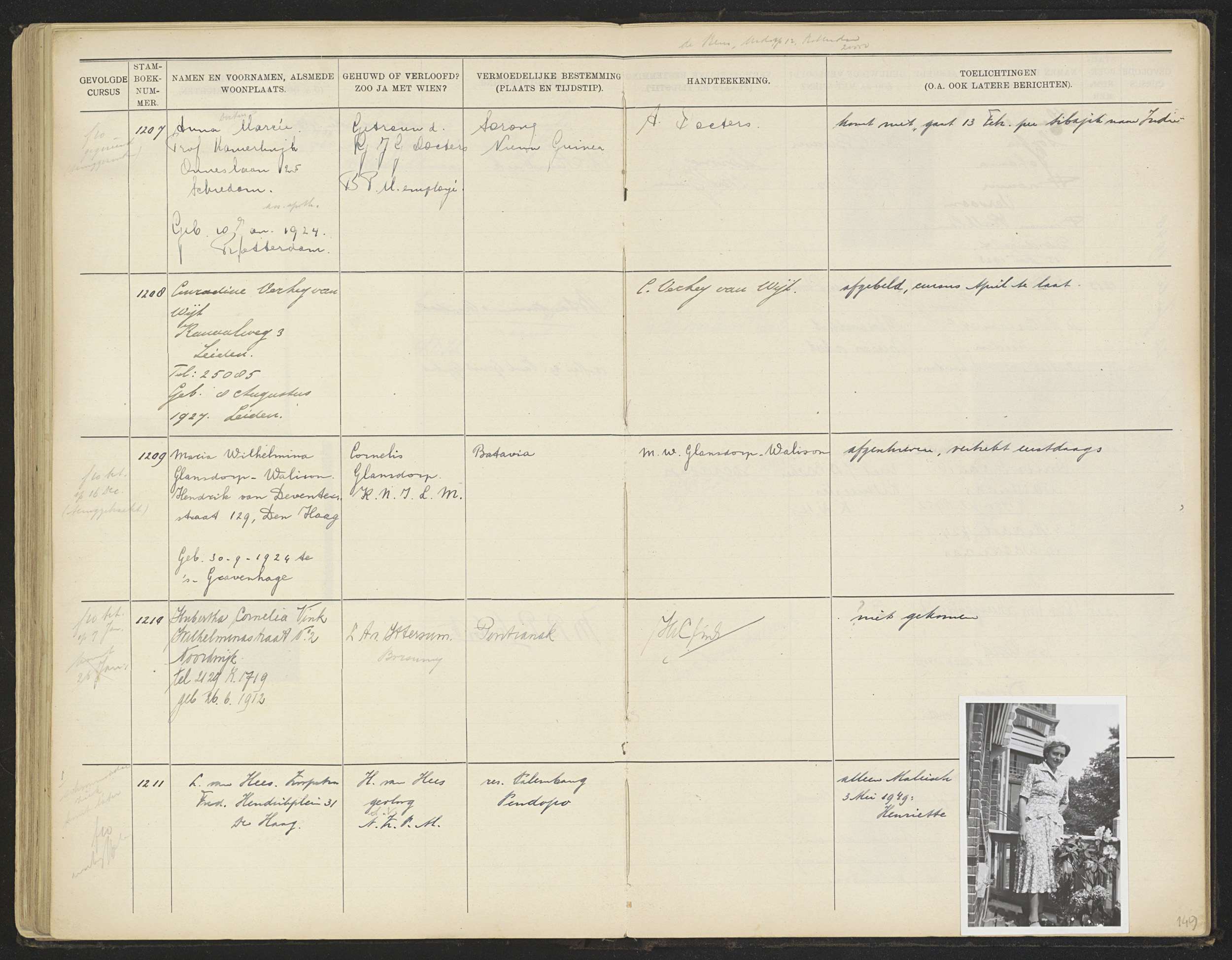 Blad 149 uit Stamboek van de leerlingen der Kolonial...
