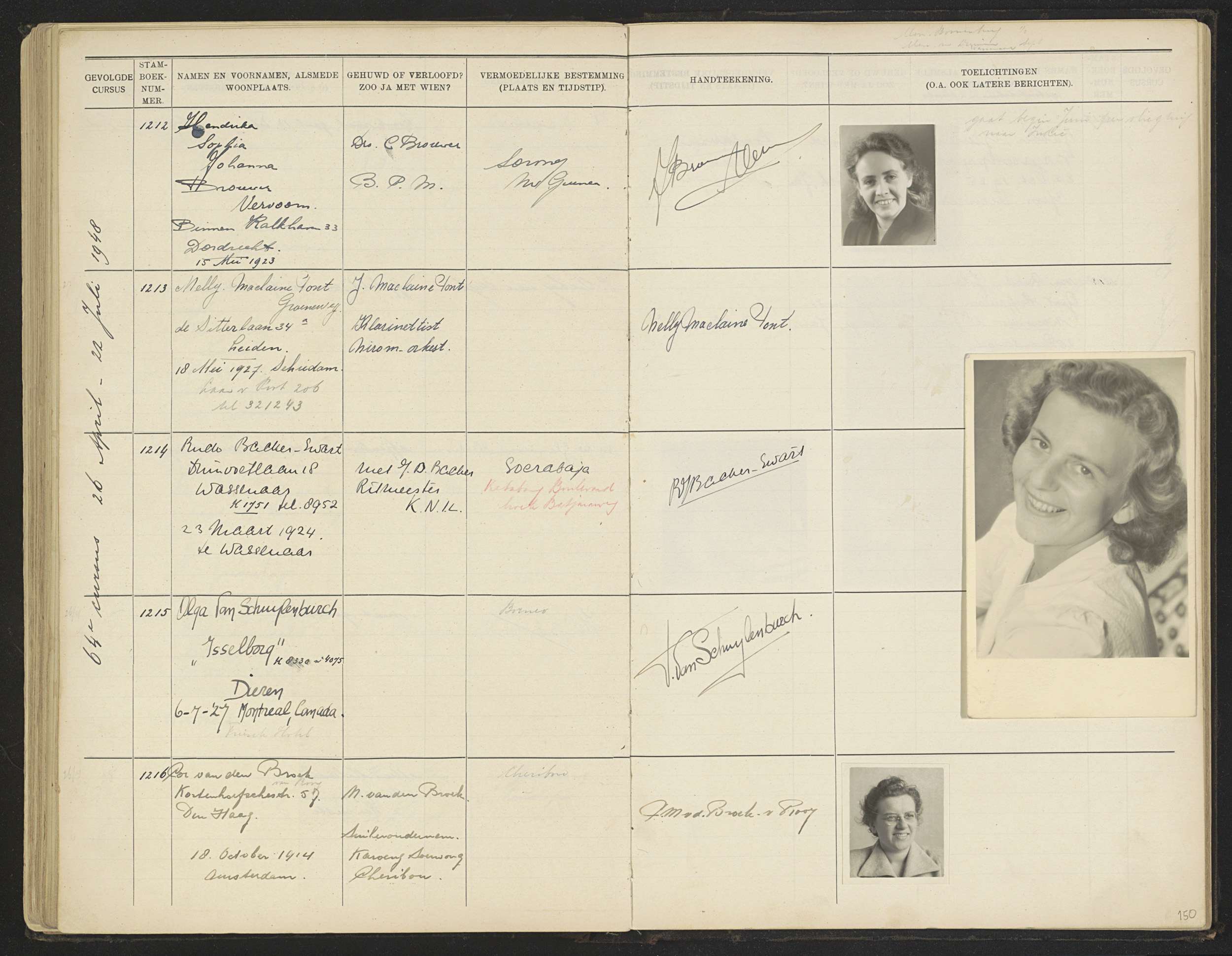 Blad 150 uit Stamboek van de leerlingen der Kolonial...