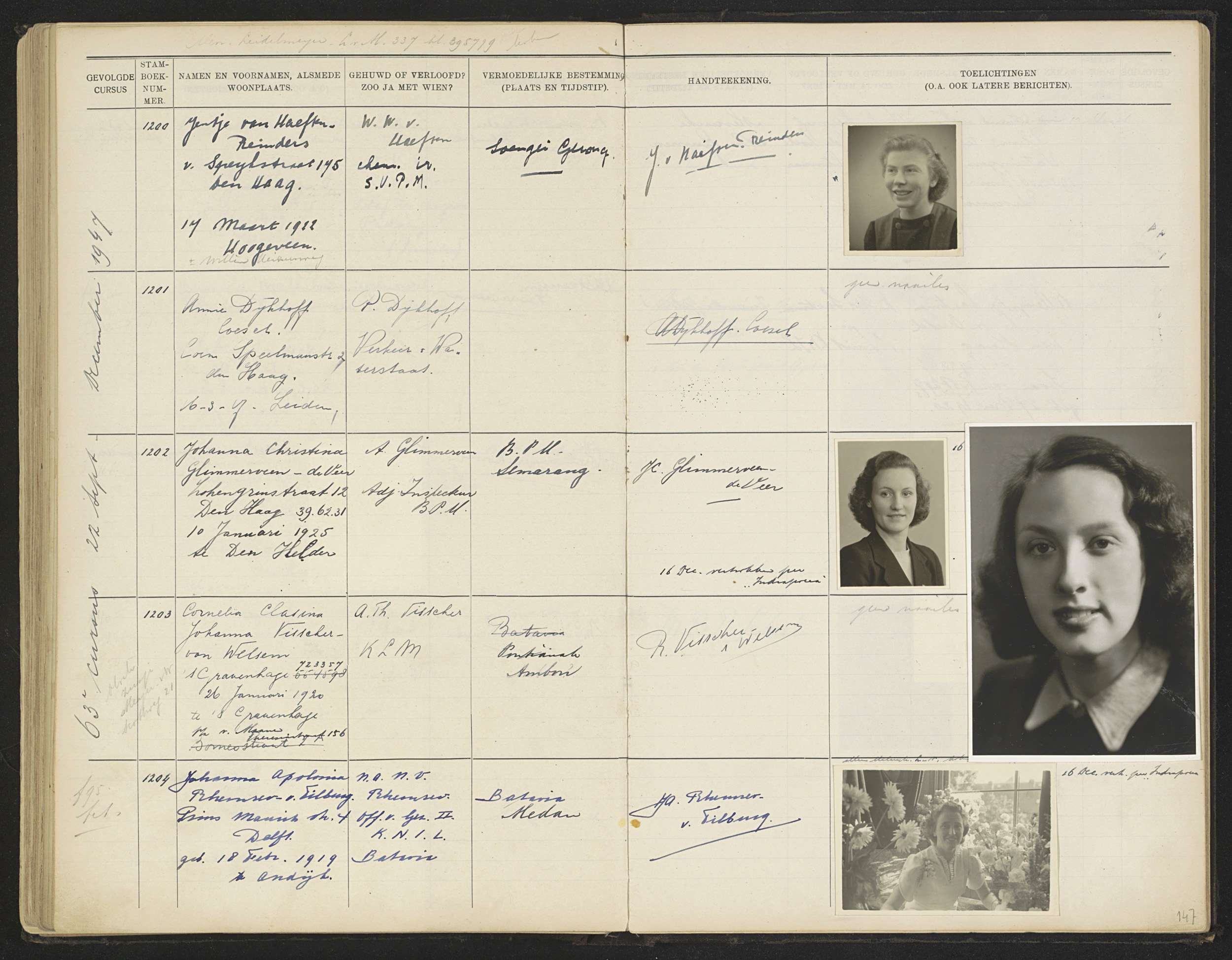Blad 147 uit Stamboek van de leerlingen der Kolonial...