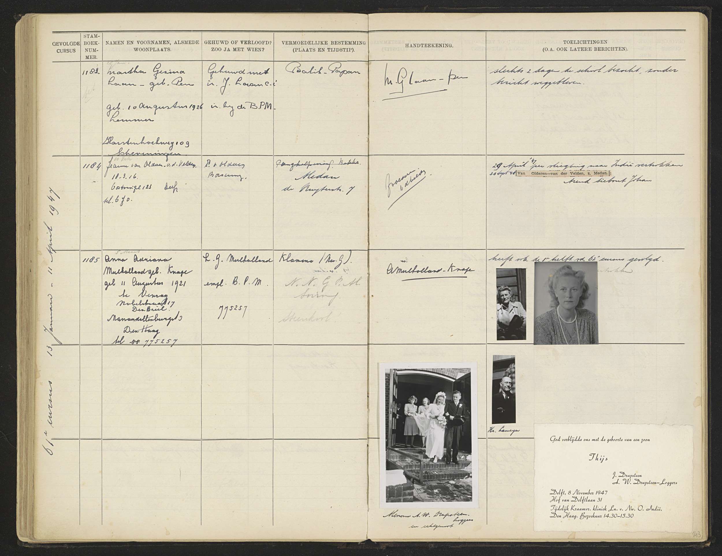 Blad 143 uit Stamboek van de leerlingen der Kolonial...