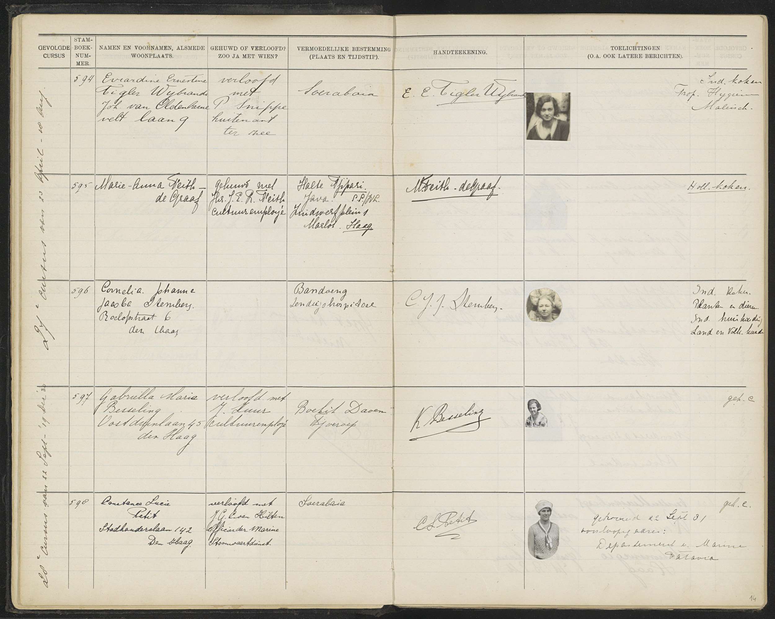 Blad 14 uit Stamboek van de leerlingen der Koloniale...