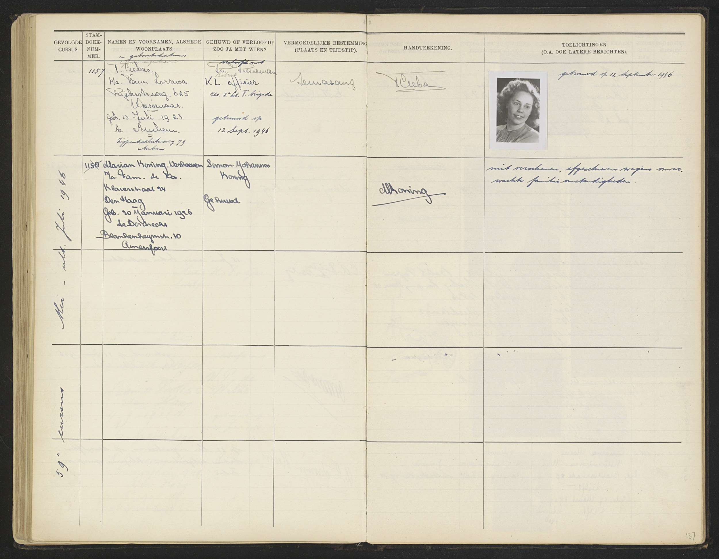 Blad 137 uit Stamboek van de leerlingen der Kolonial...