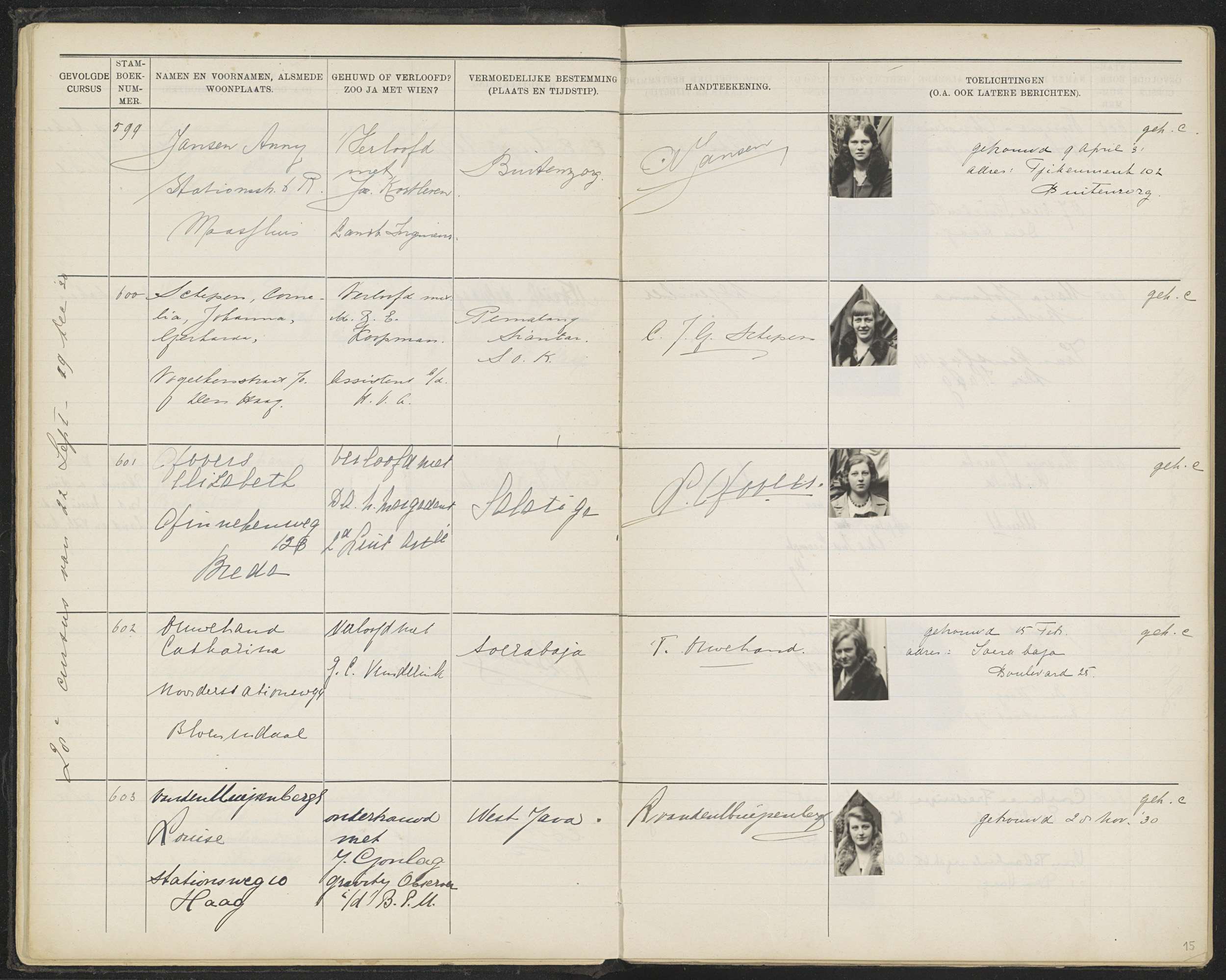 Blad 15 uit Stamboek van de leerlingen der Koloniale...