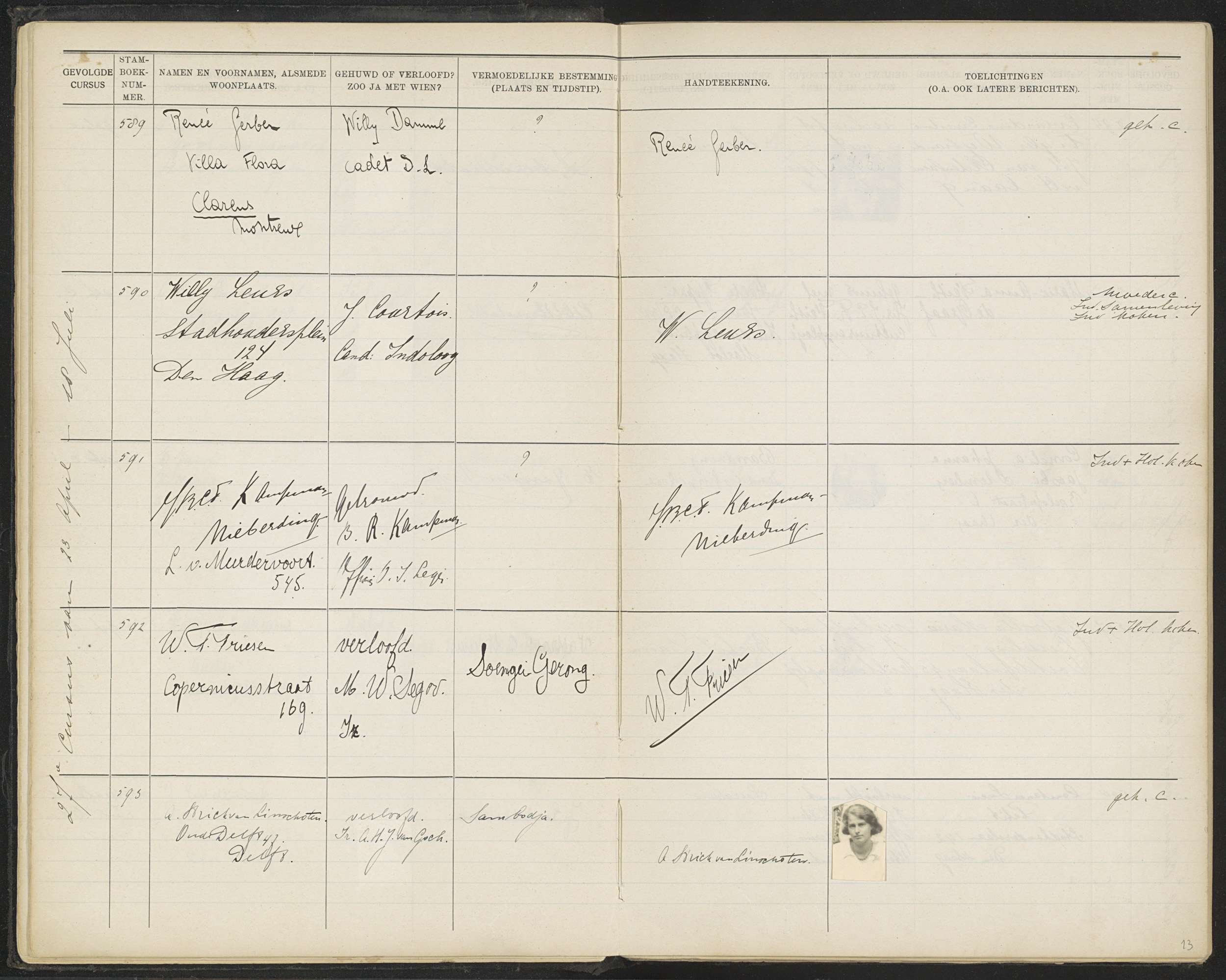 Blad 13 uit Stamboek van de leerlingen der Koloniale...