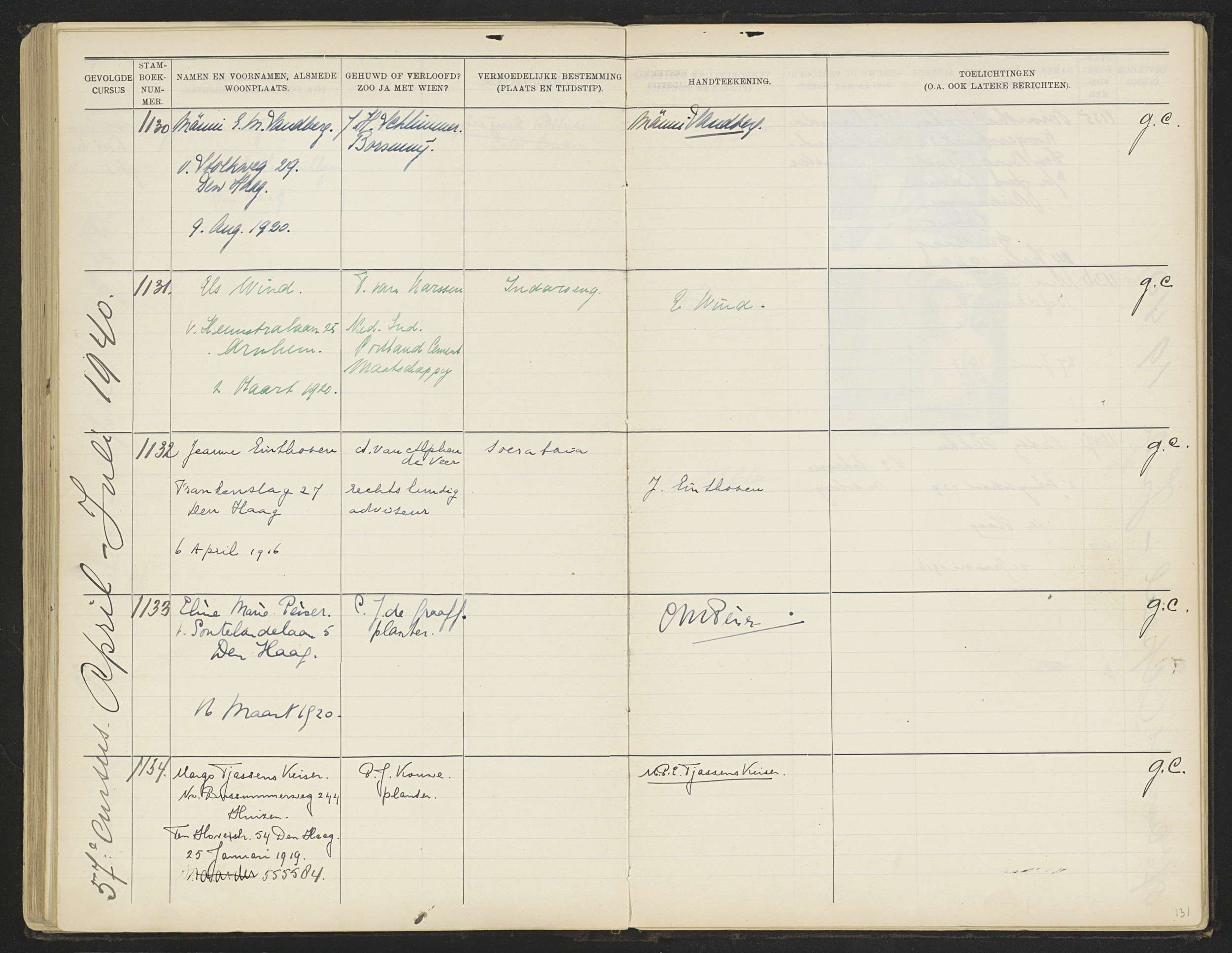 Blad 131 uit Stamboek van de leerlingen der Kolonial...