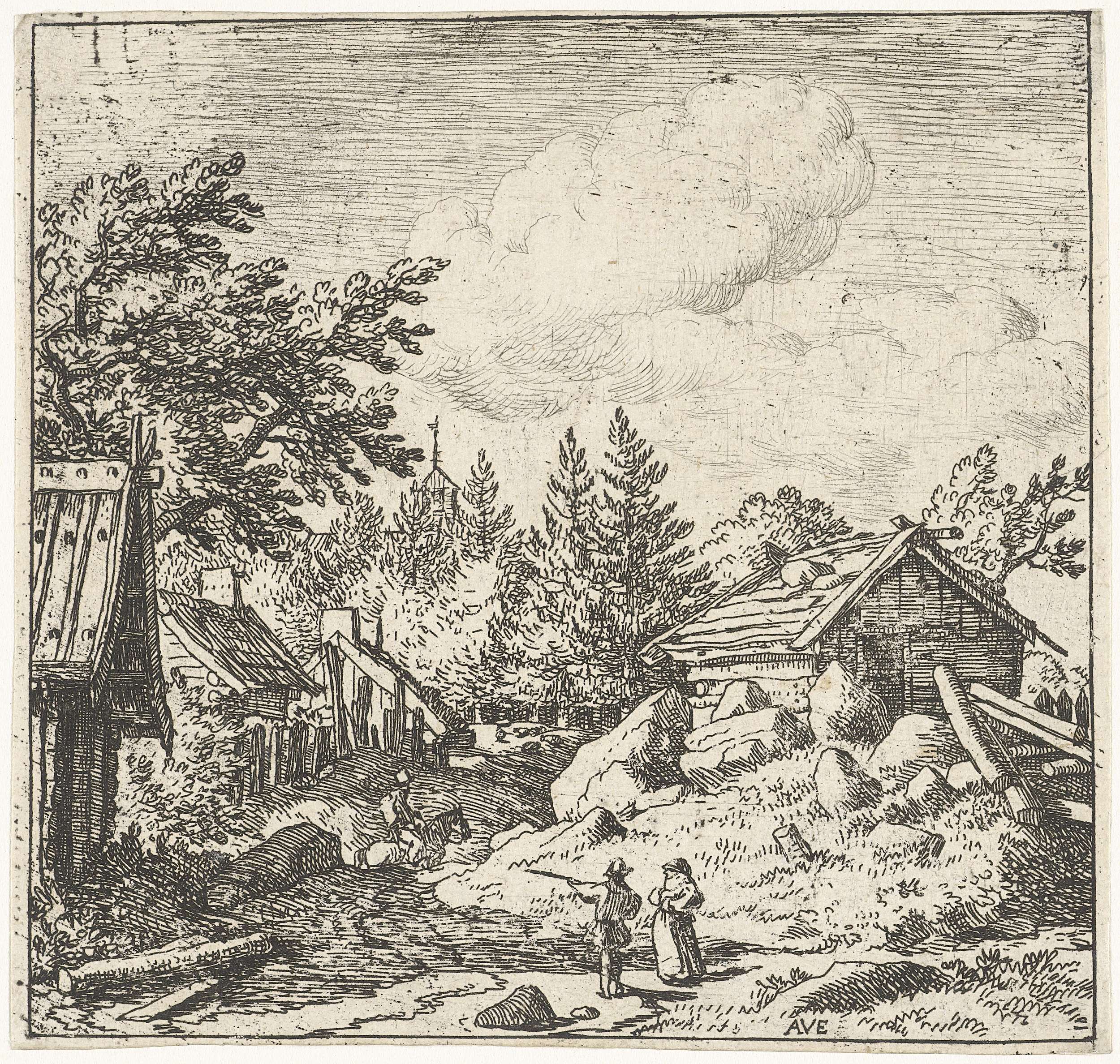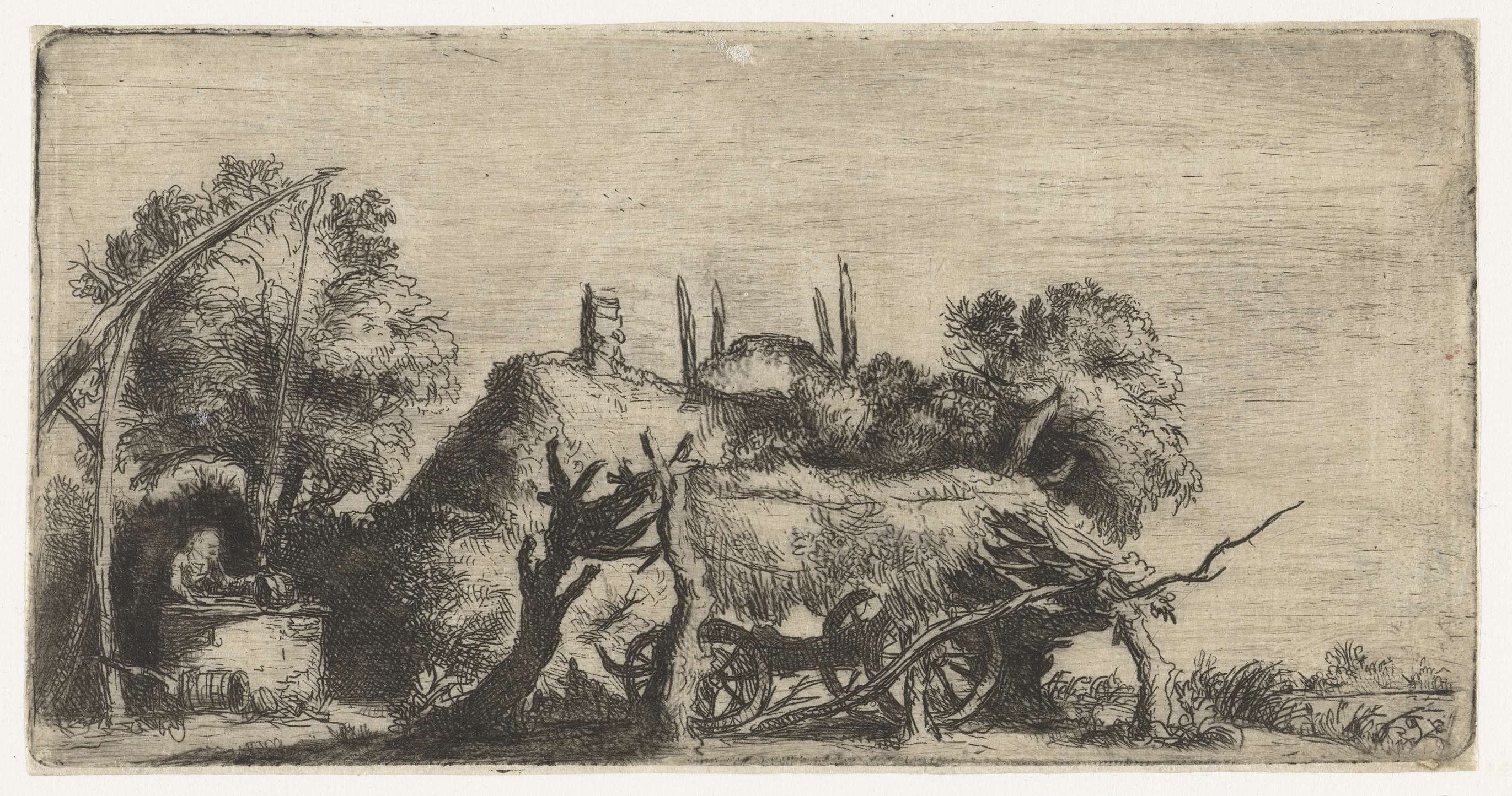 Landschap met een waterput en een wagen