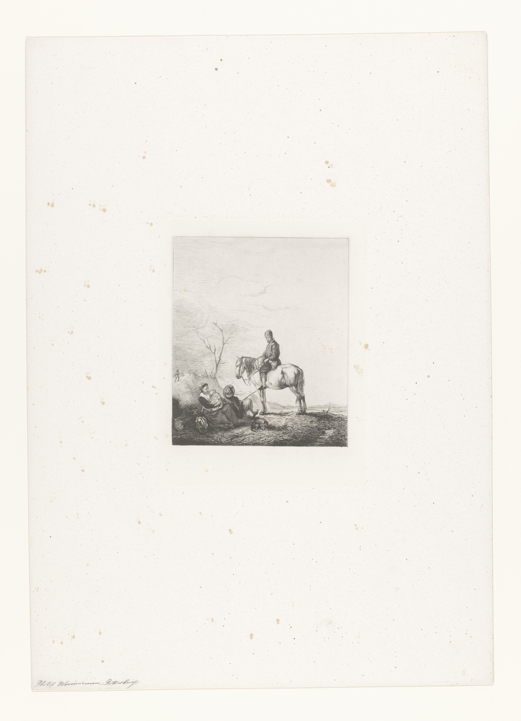 Ruiter bij een rustend gezin