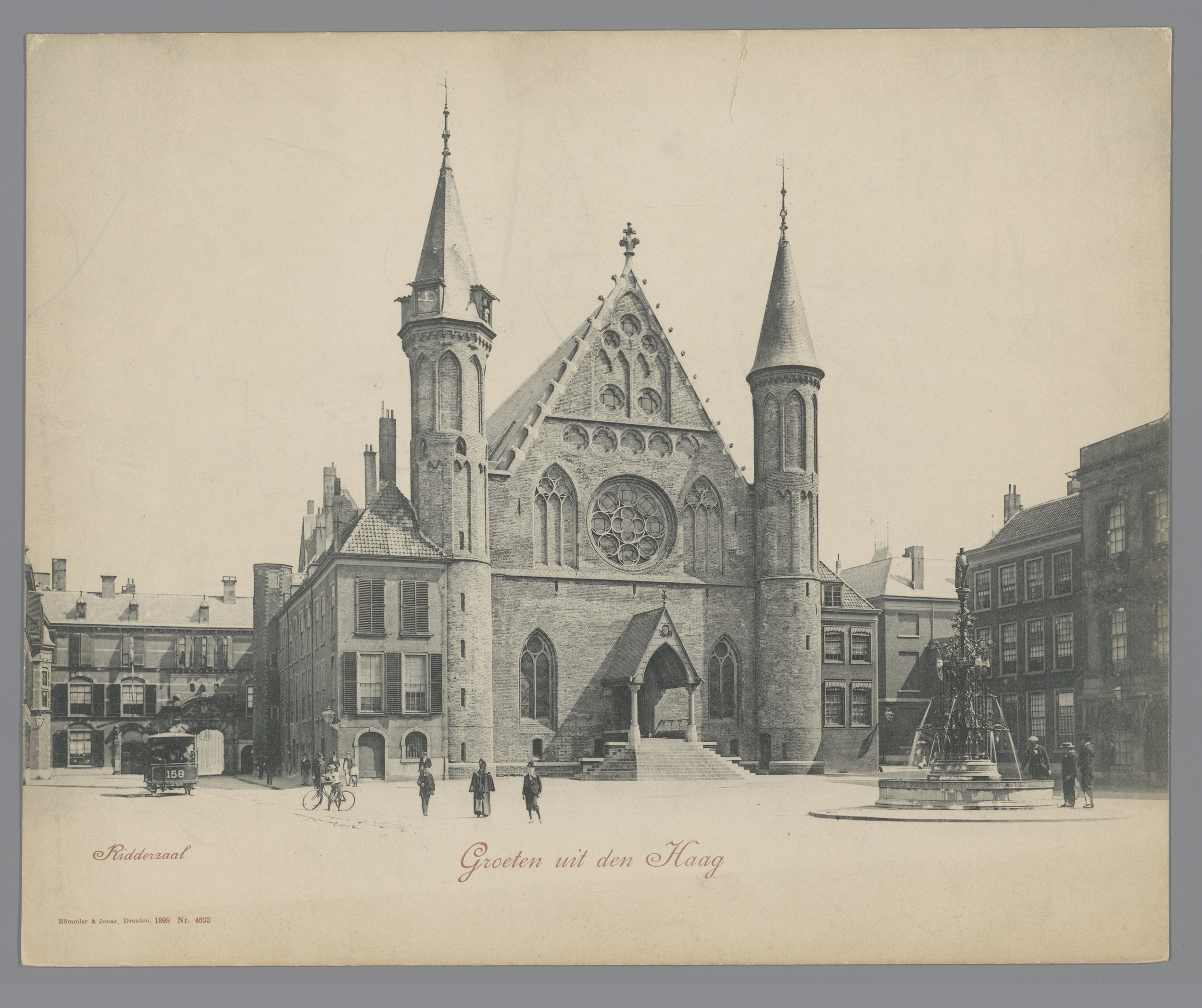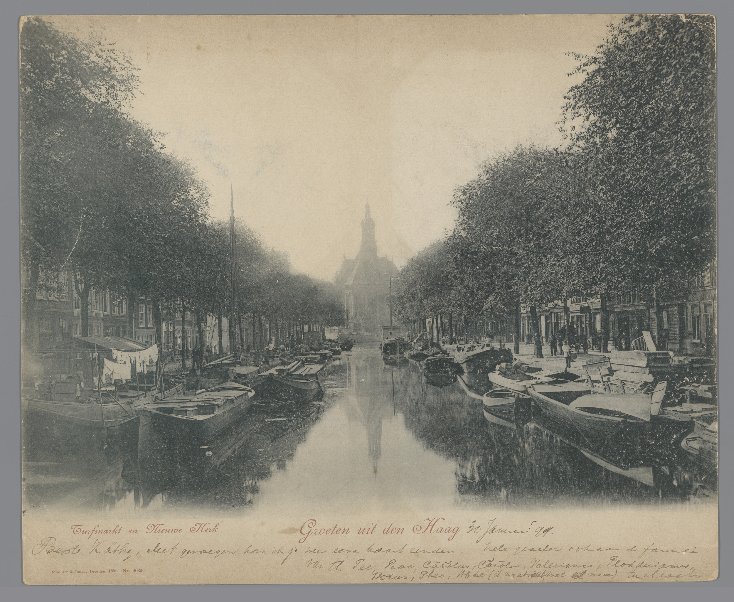 Gezicht op de Turfmarkt en de Nieuwe Kerk te Den Haag