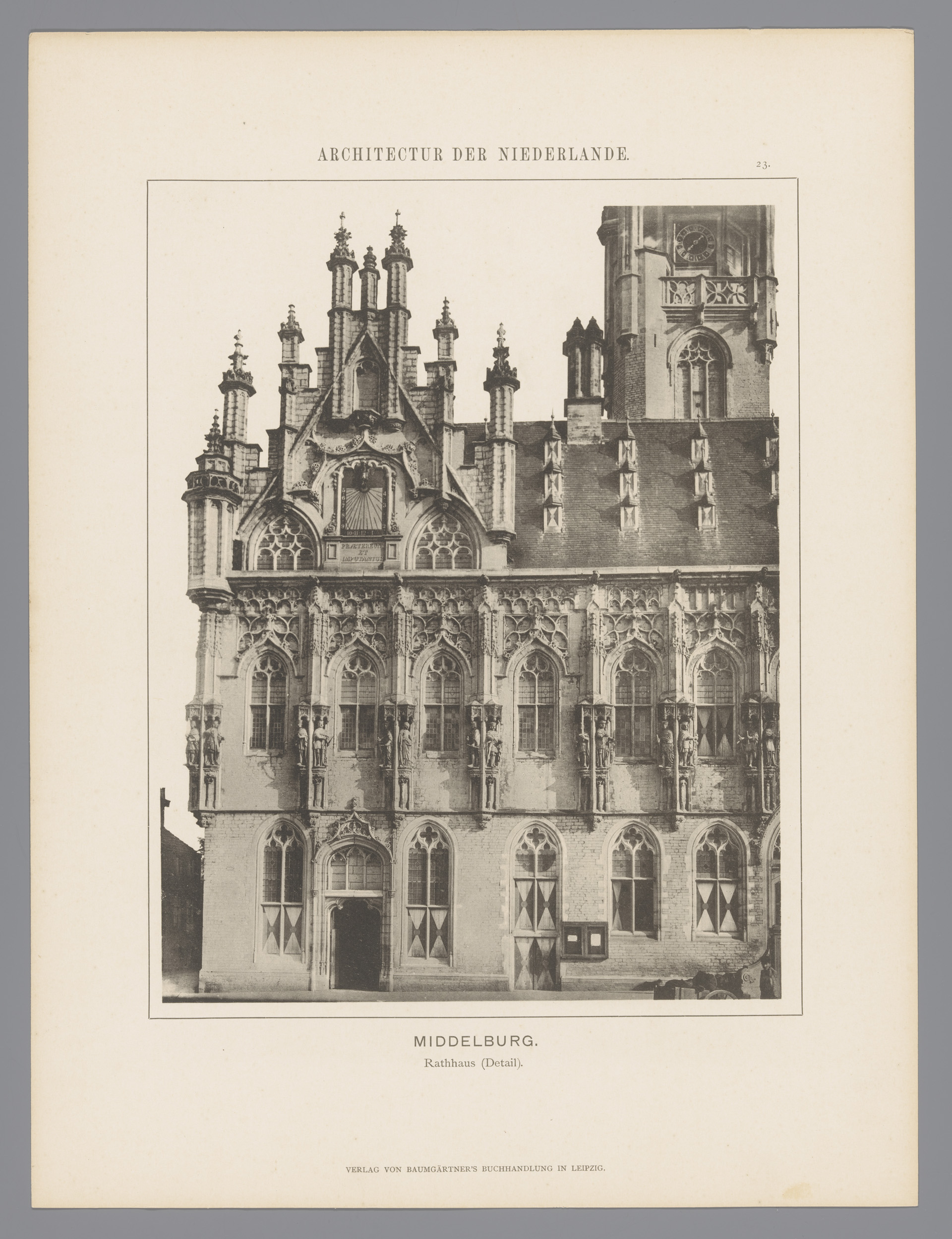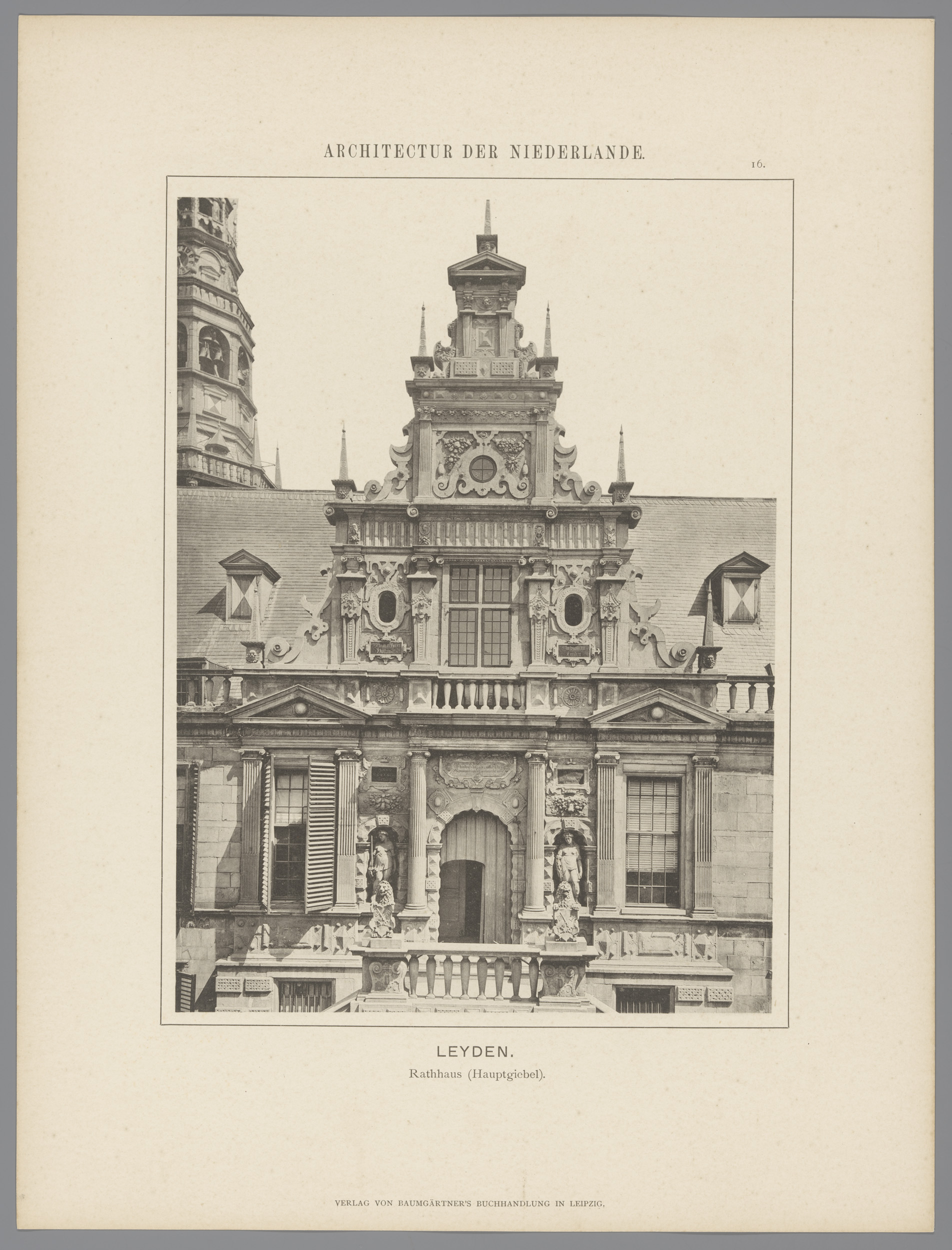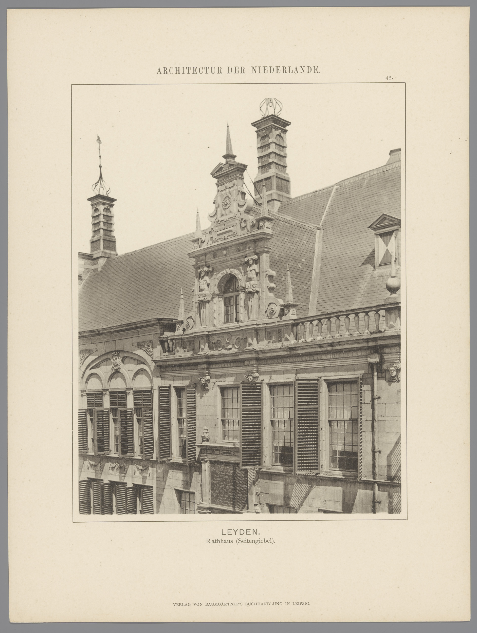 Gezicht op een zijgevel van het stadhuis te Leiden