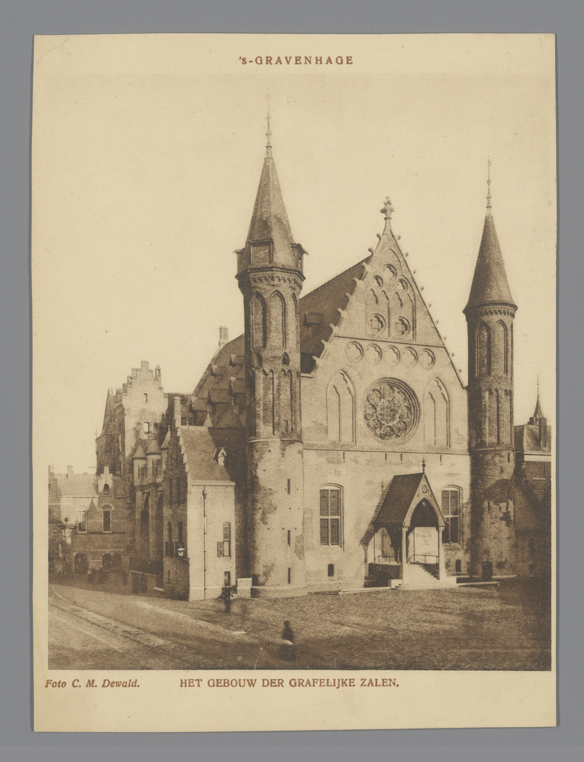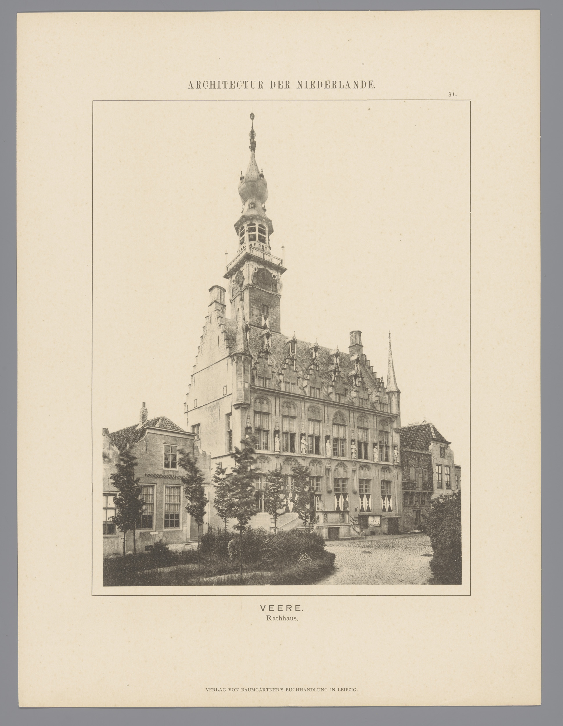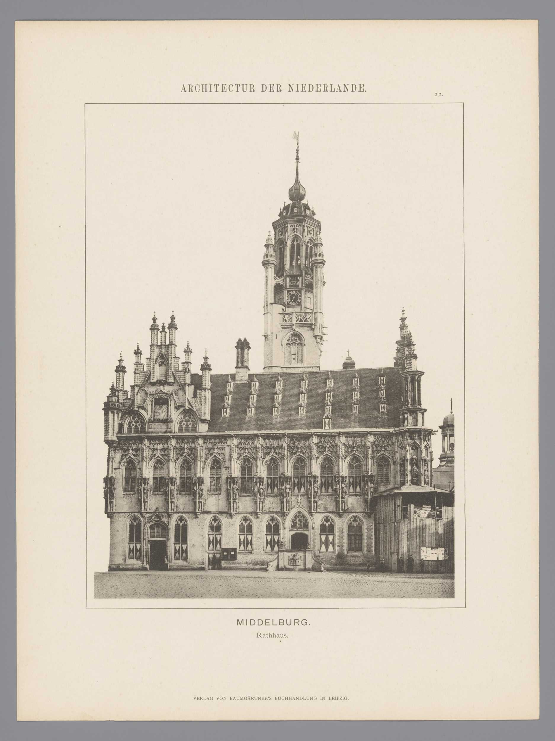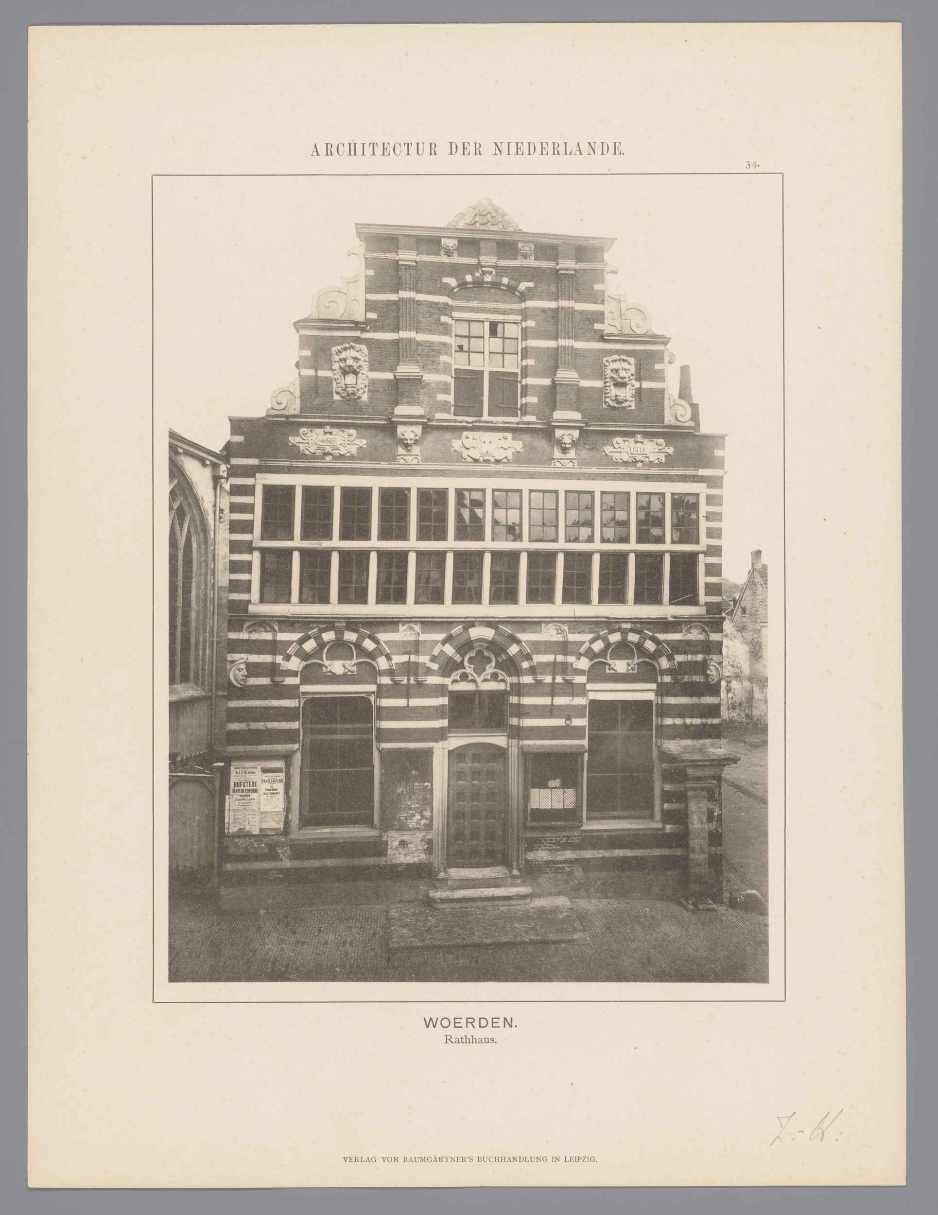Gezicht op een zijgevel van het stadhuis te Leiden
