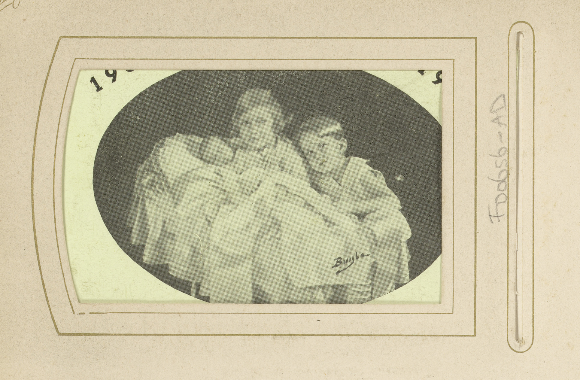 Portret van twee kinderen en een baby