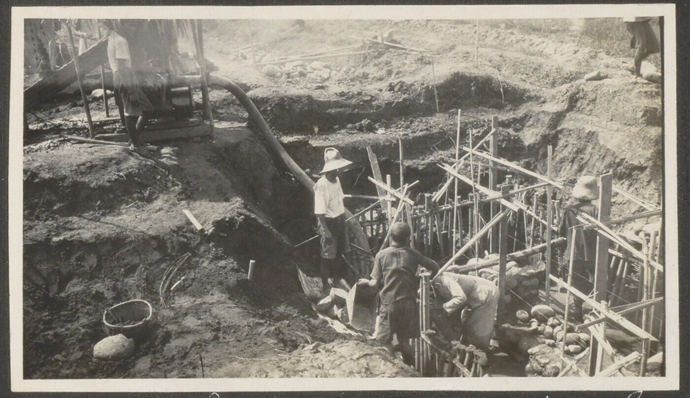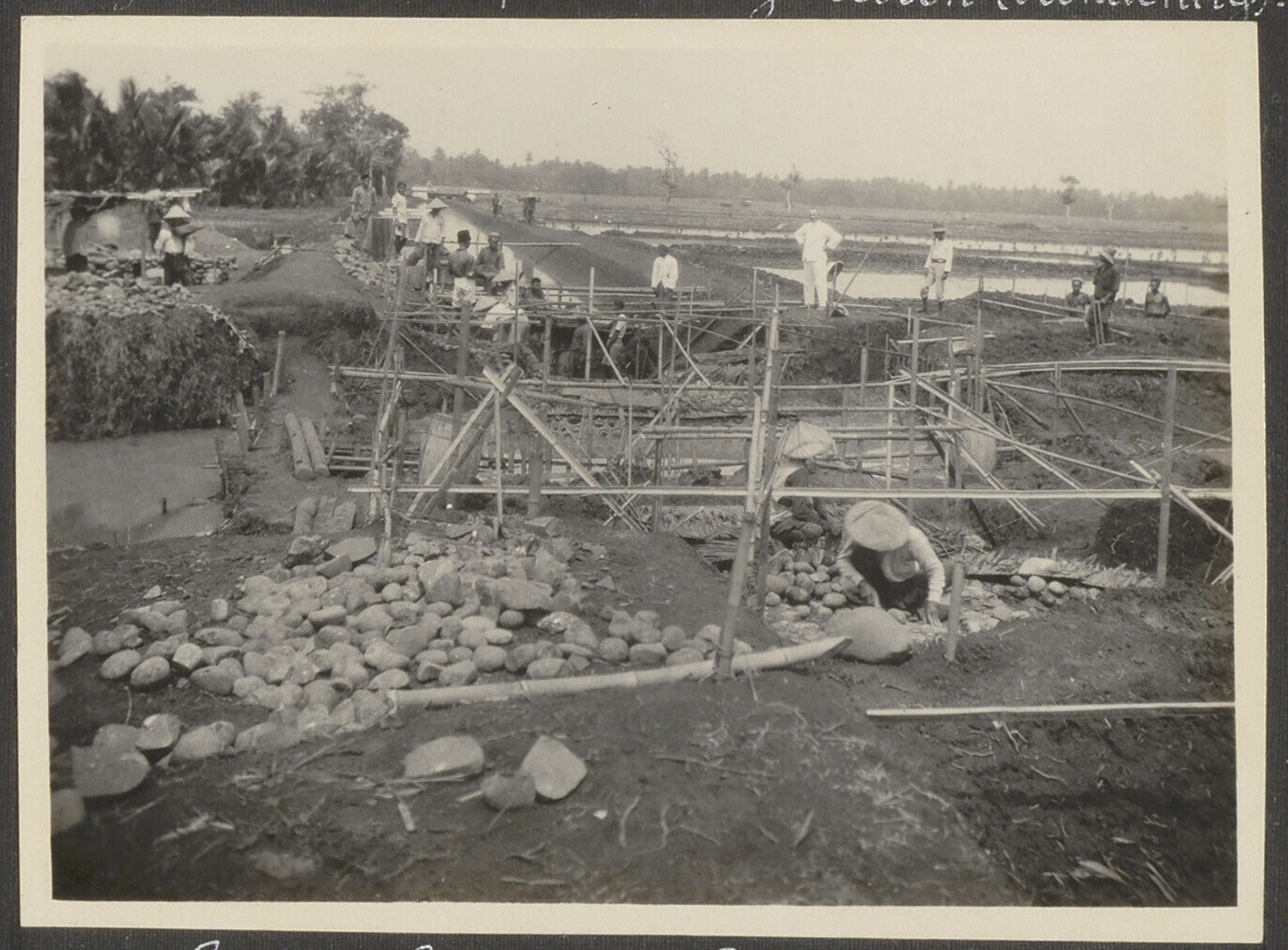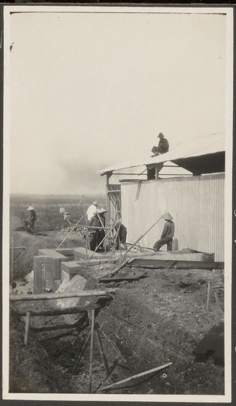 Bouwwerkzaamheden aan irrigatiewerk van suikerondern...