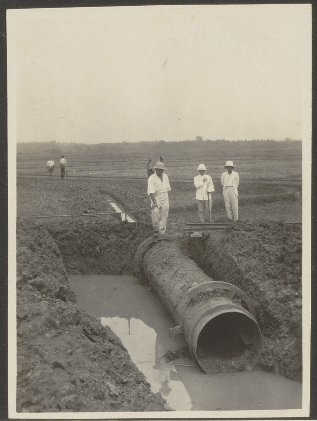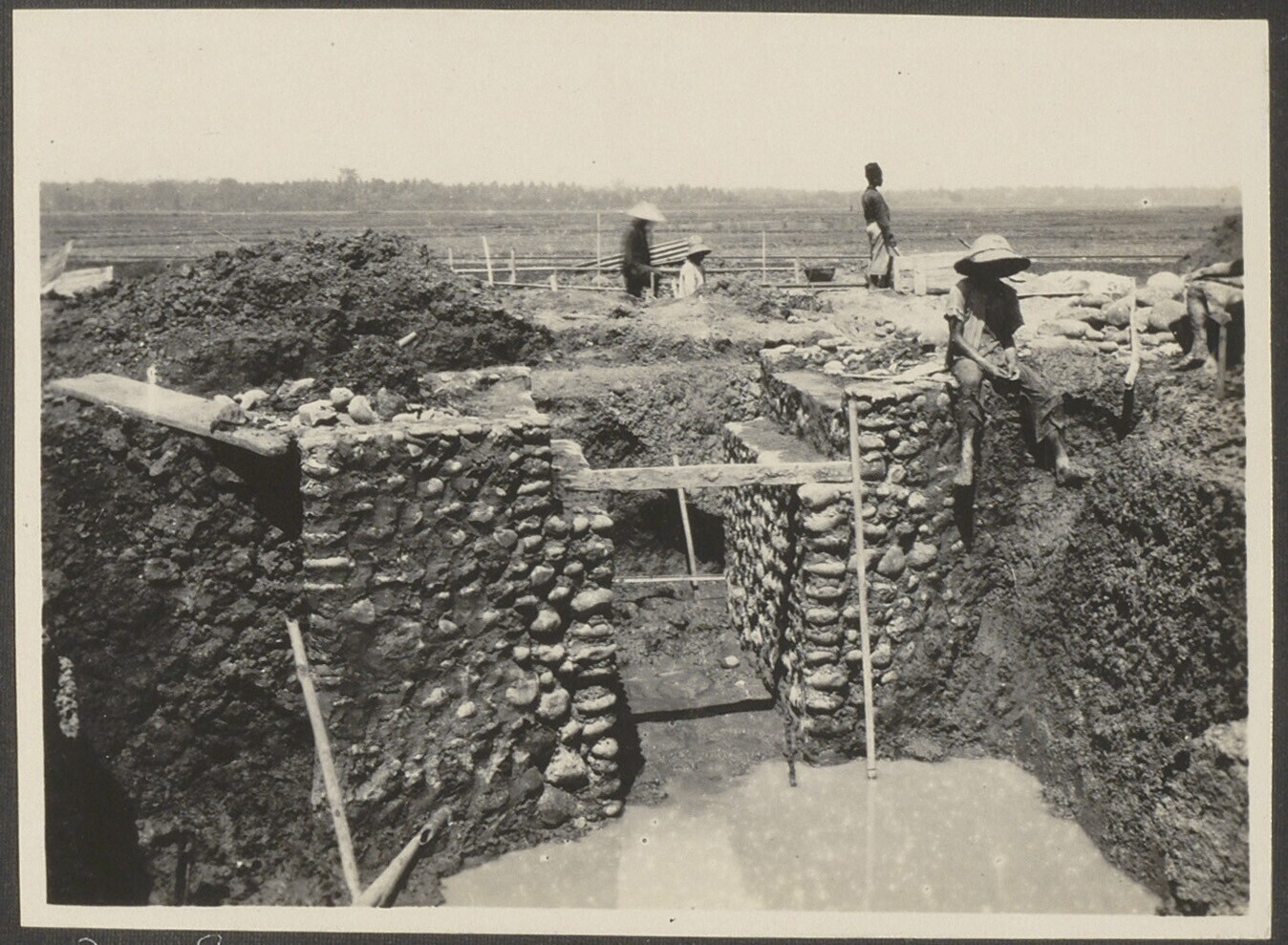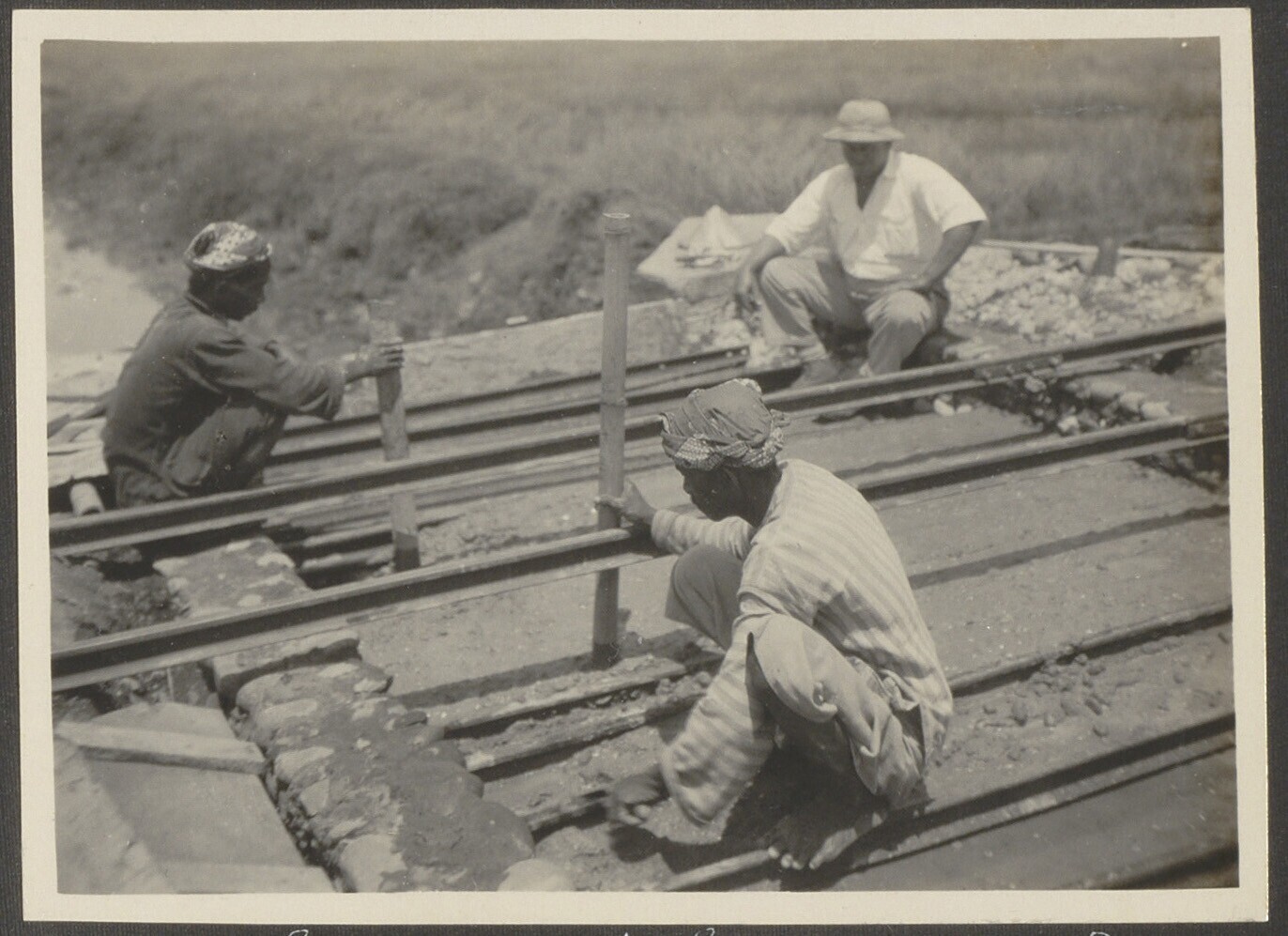 Bouwwerkzaamheden aan irrigatiewerk van suikerondern...