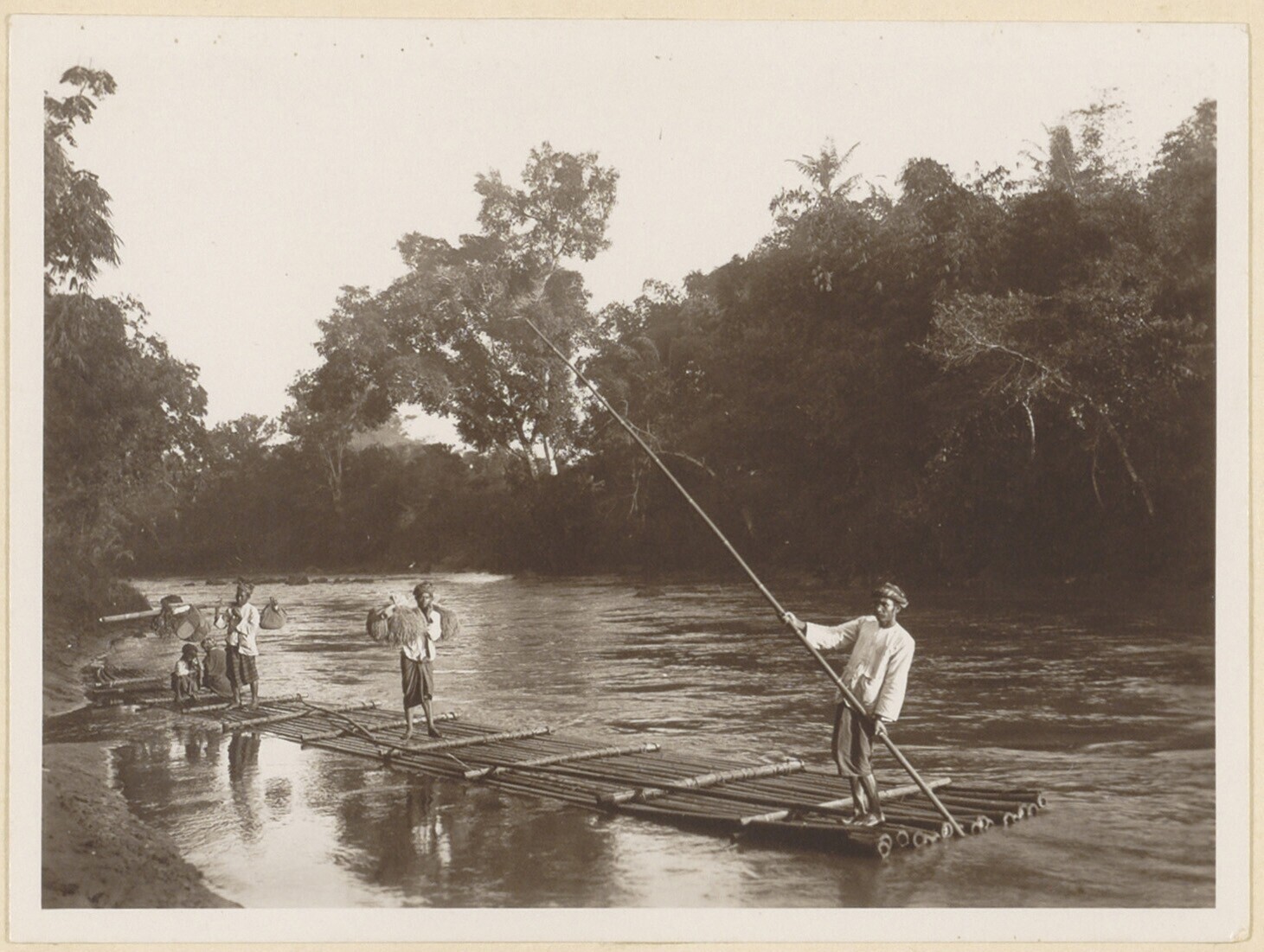 Gezelschap per vlot over rivier