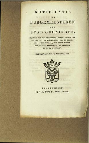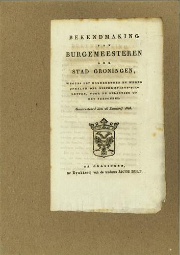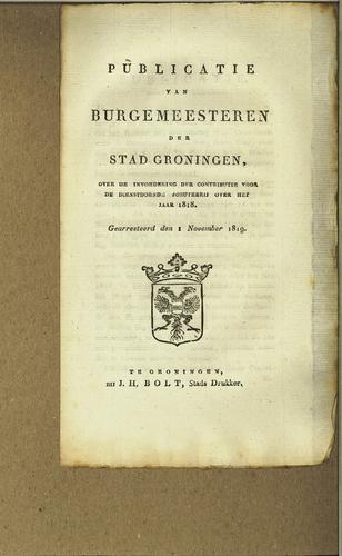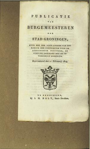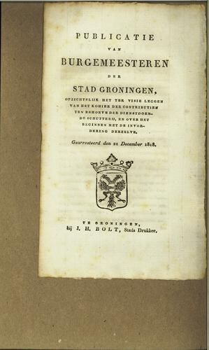 Plakkaat contributie schutterij Groningen, 1818