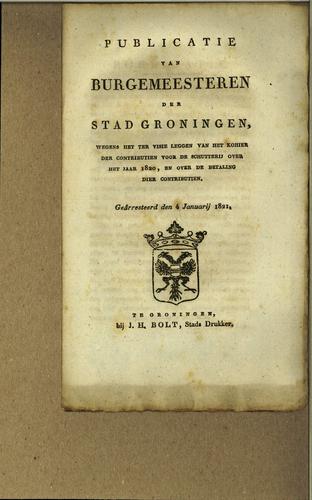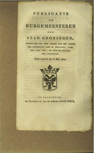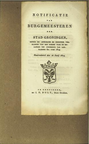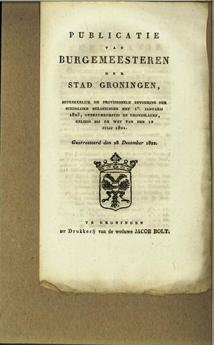 Publicatie stedelijke belastingen, 1822