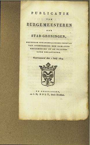 Plakkaat strafbepalingen plaatselijke belastingen, 1819