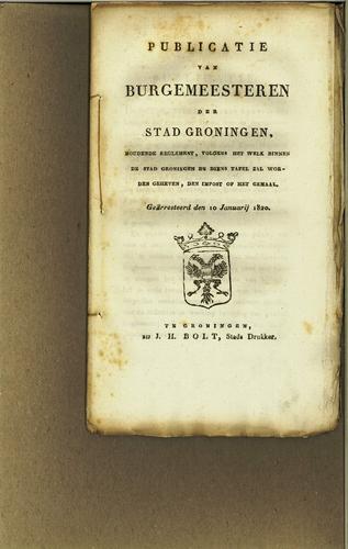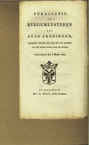 Publicatie over tijd van aanvoer harde graan, 1820