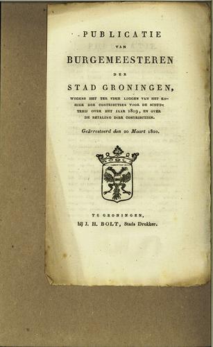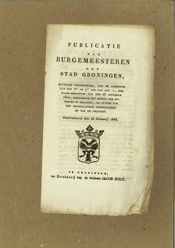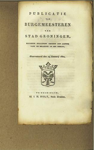 Publicatie reglement stedelijke belastingen, 1823