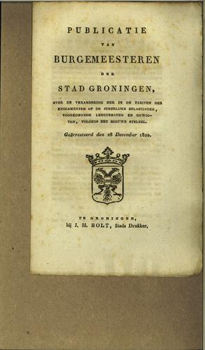 Publicatie tarieven stedelijke belasting, 1820