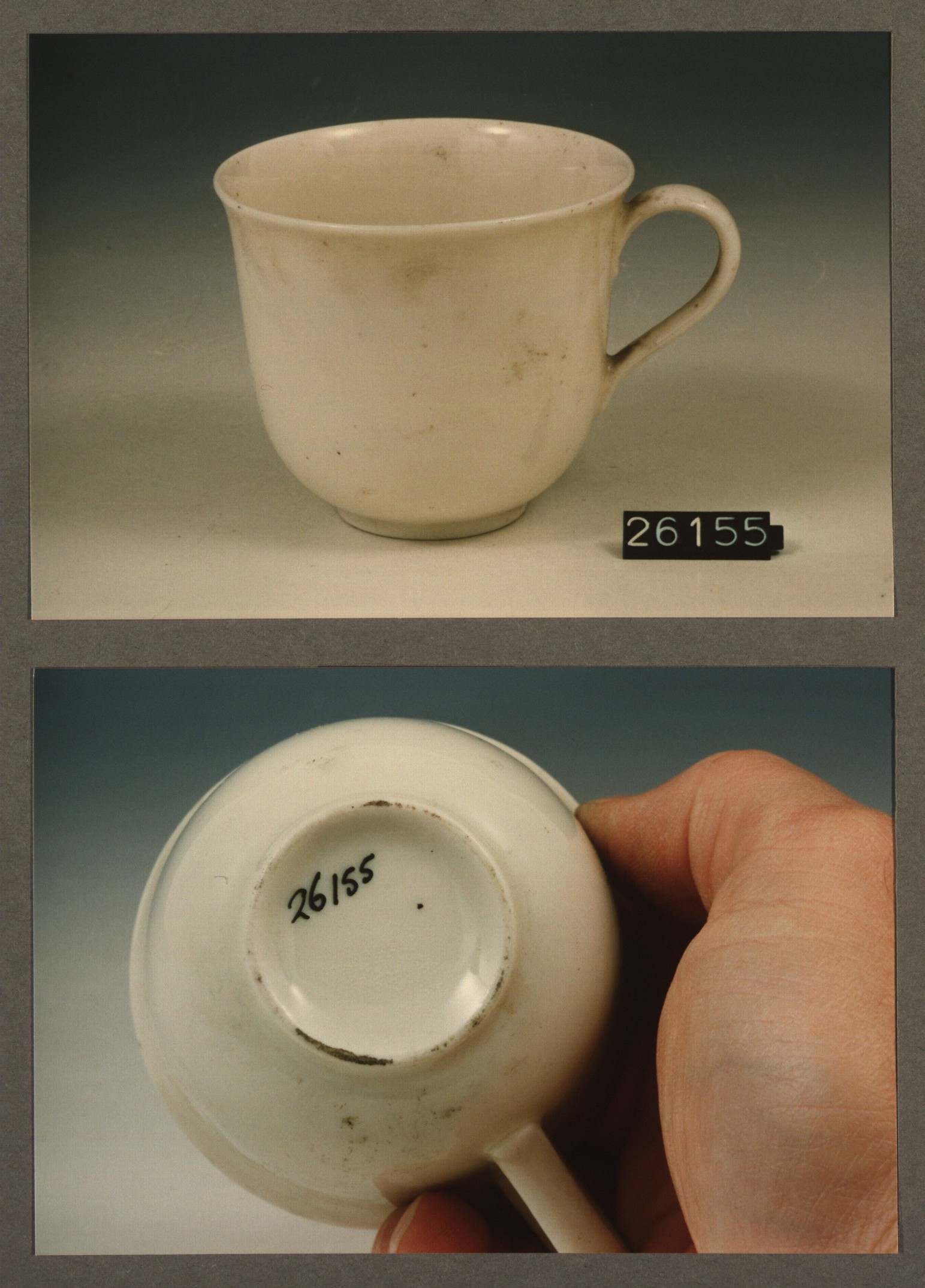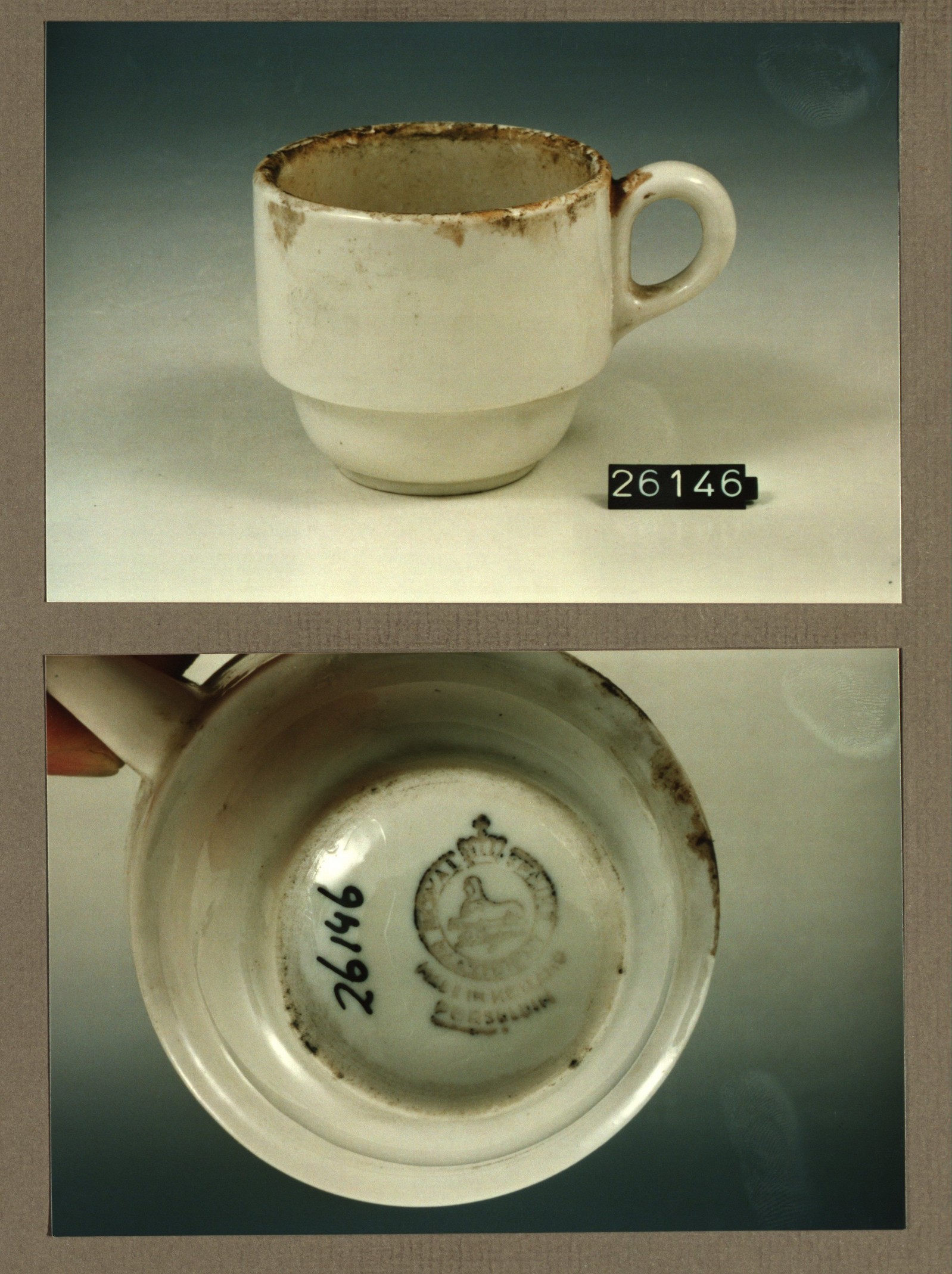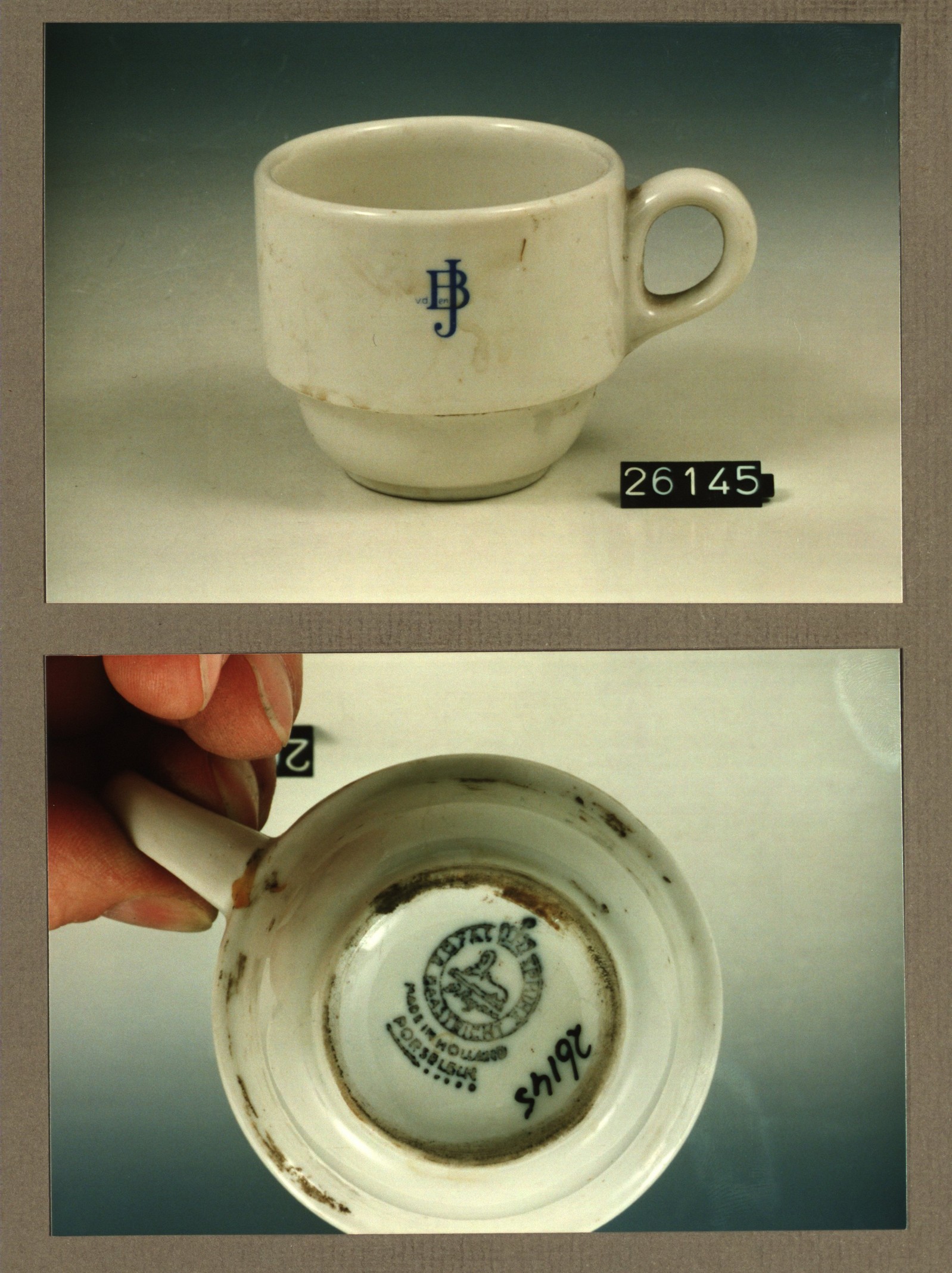 Kop met opschrift, model A stapel met decor BJ of JB