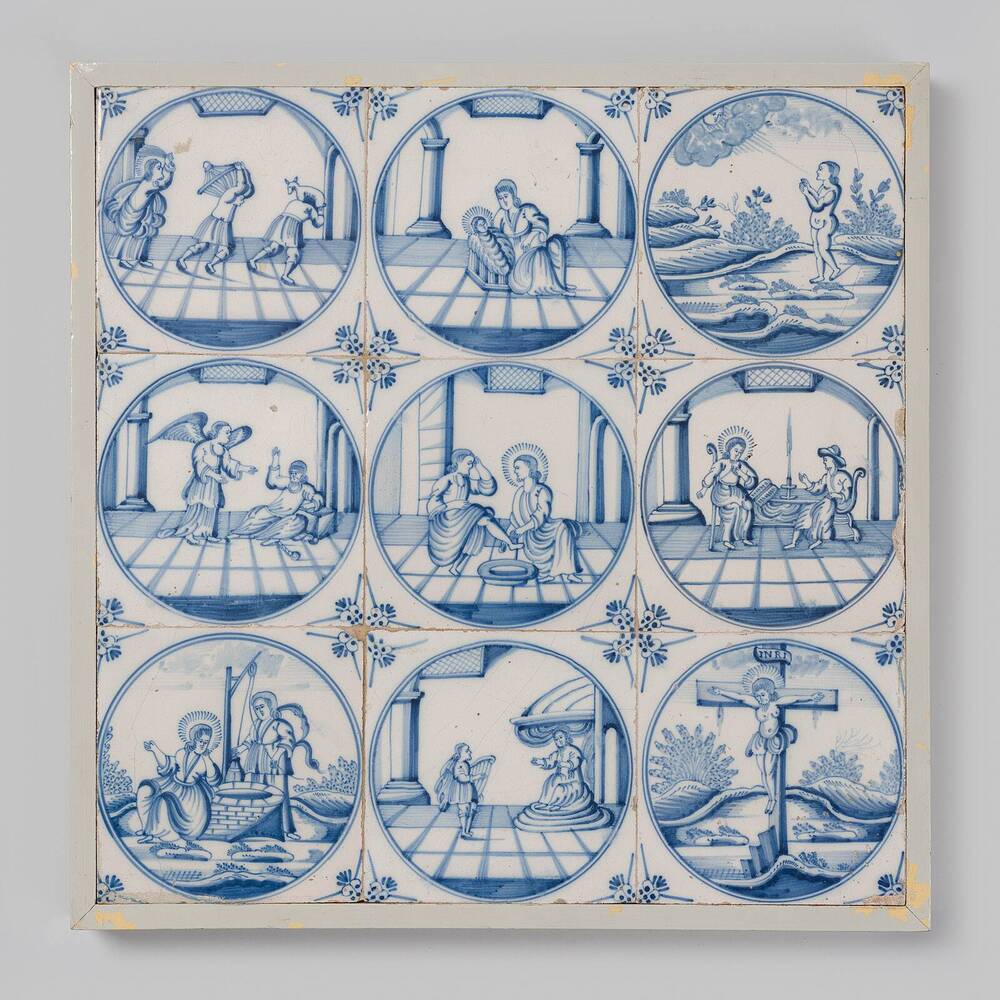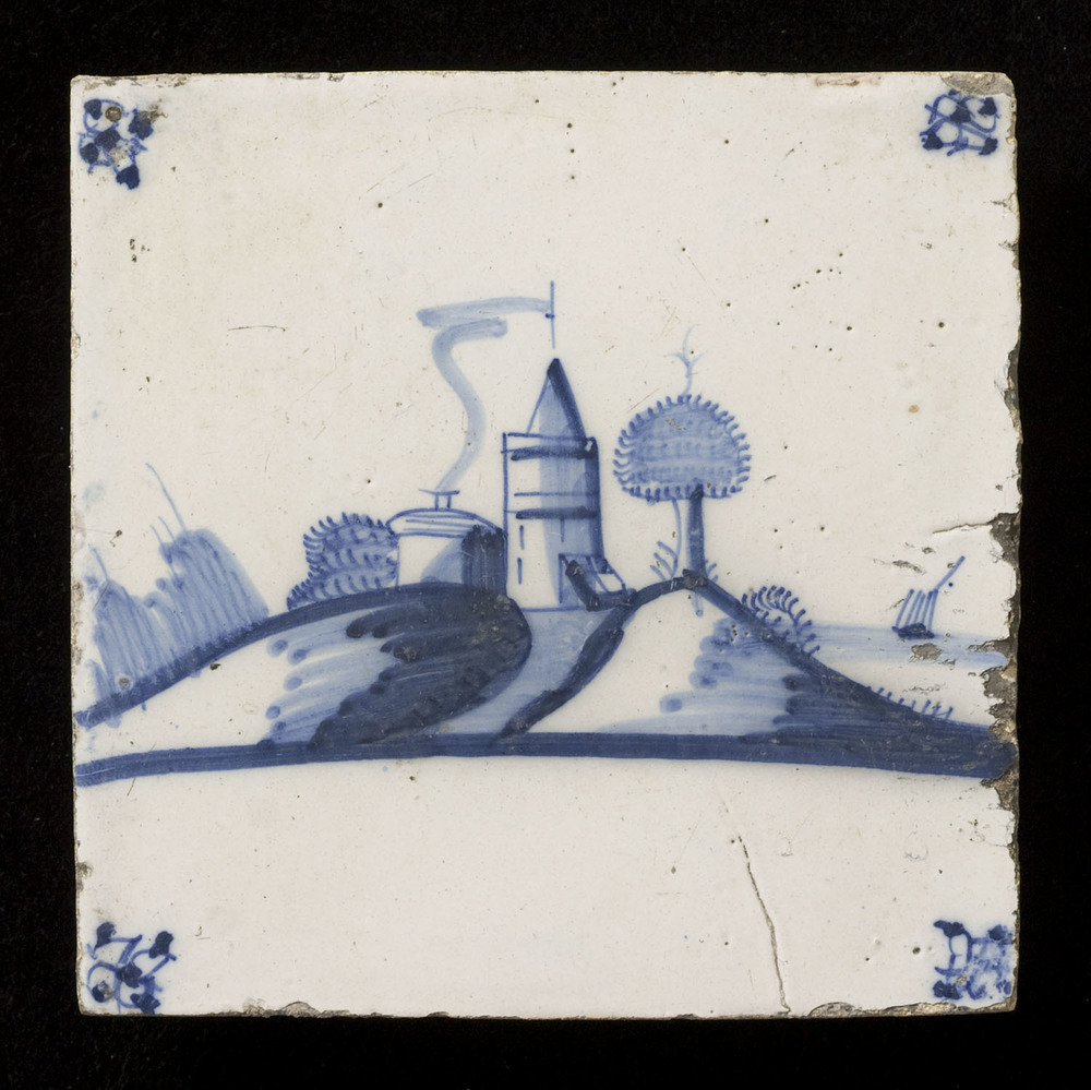 tegel van aardewerk met tinglazuur, voorstellende: h...