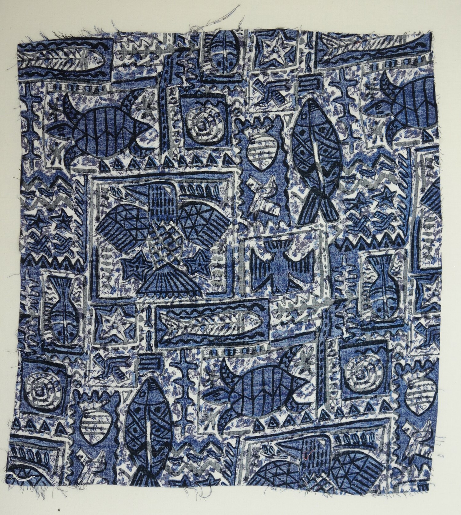 Hand spun and woven block printed (resist) (56)