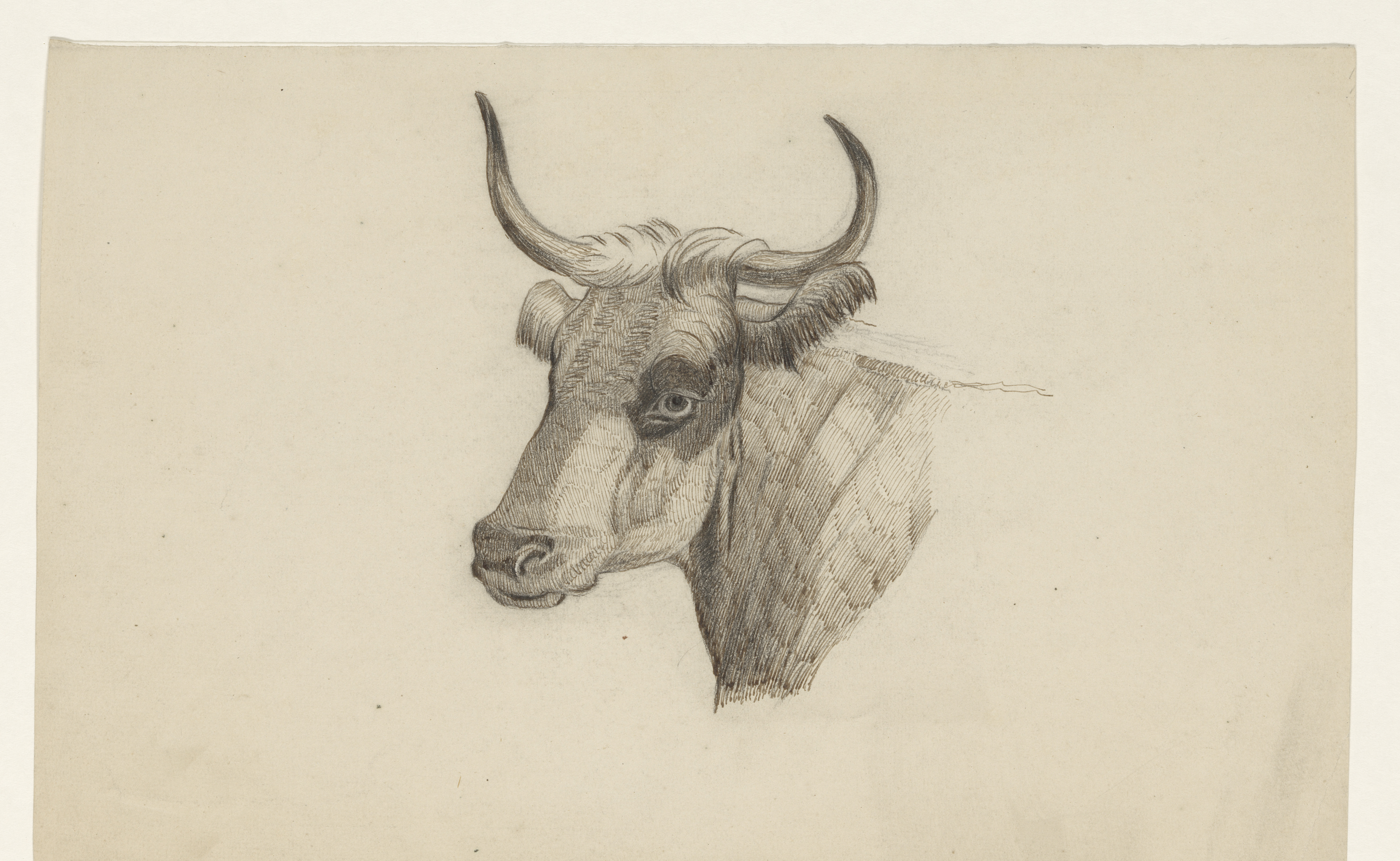 Kop van een rund, naar links