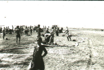 Mensen met visnetten op het strand, gebied van de Pe...