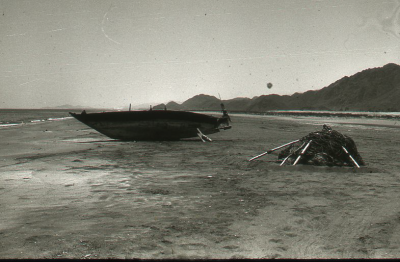 Vissersbootjes op een strand, gebied van de Perzisch...