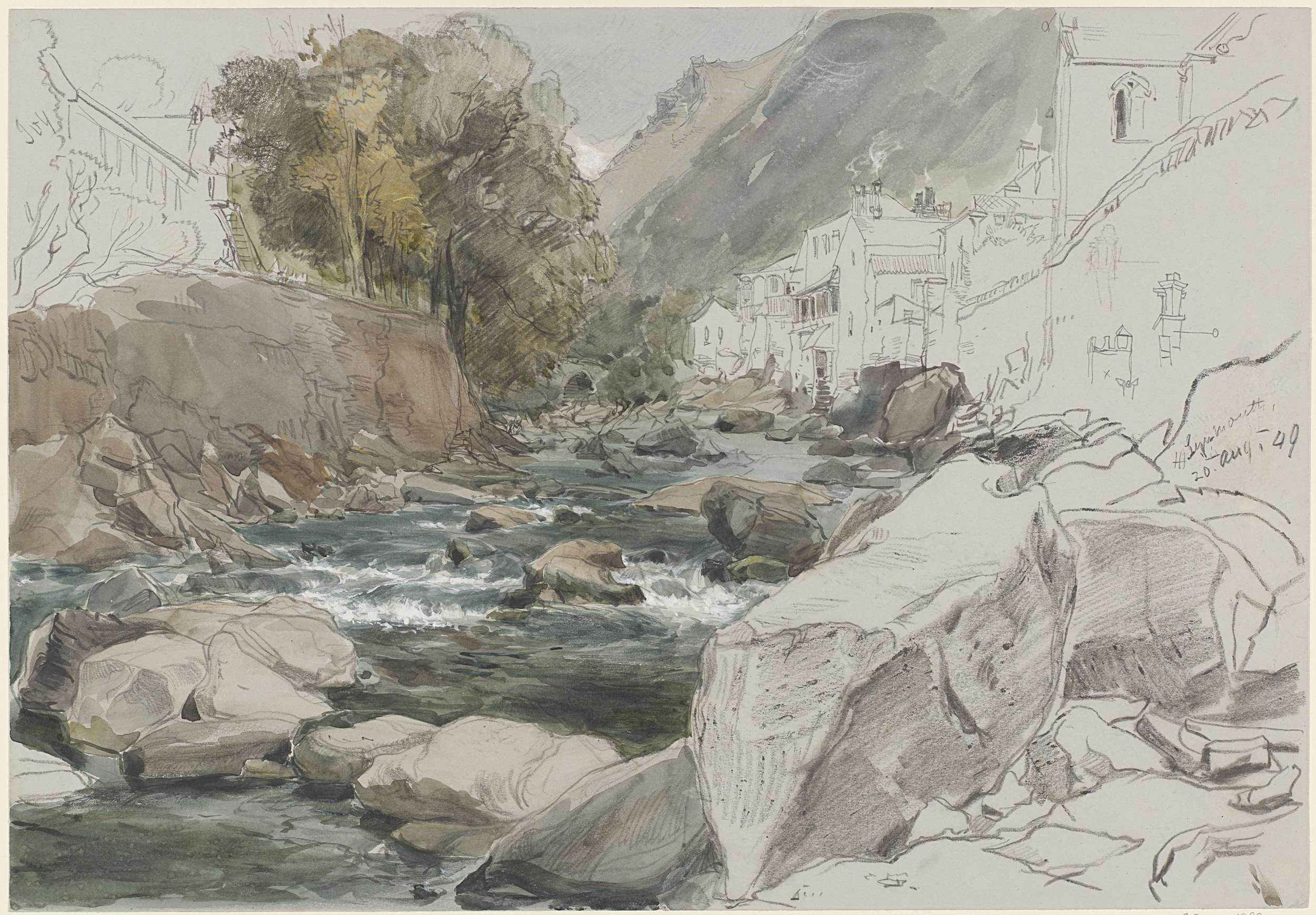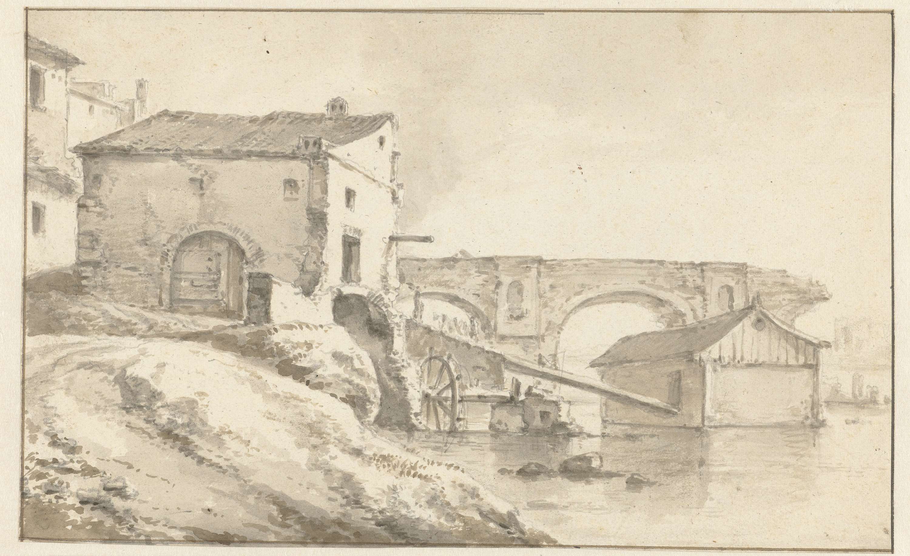 Watermolen bij een ingestorte brug