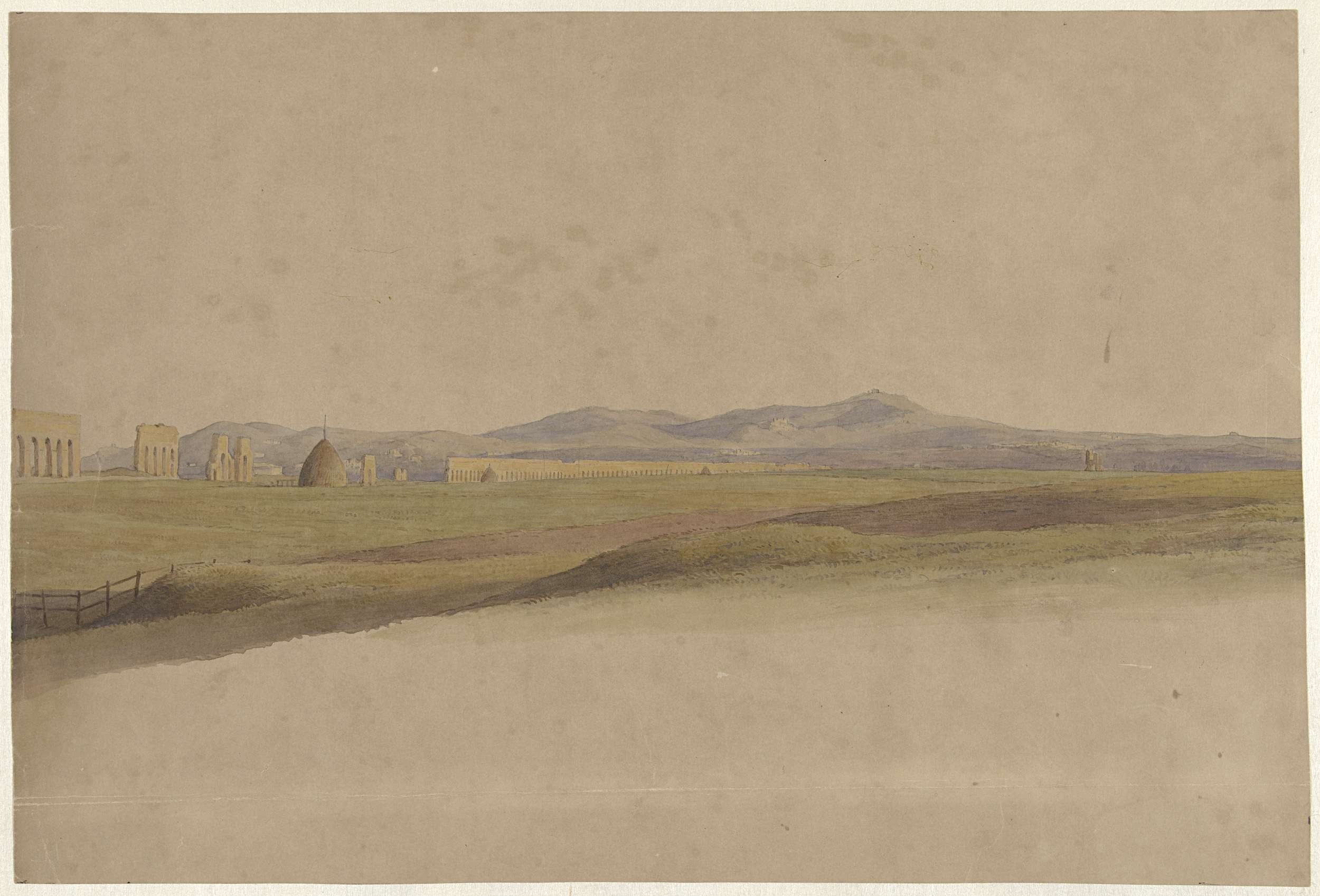 Panoramisch landschap met aquaduct, Aqua Claudia