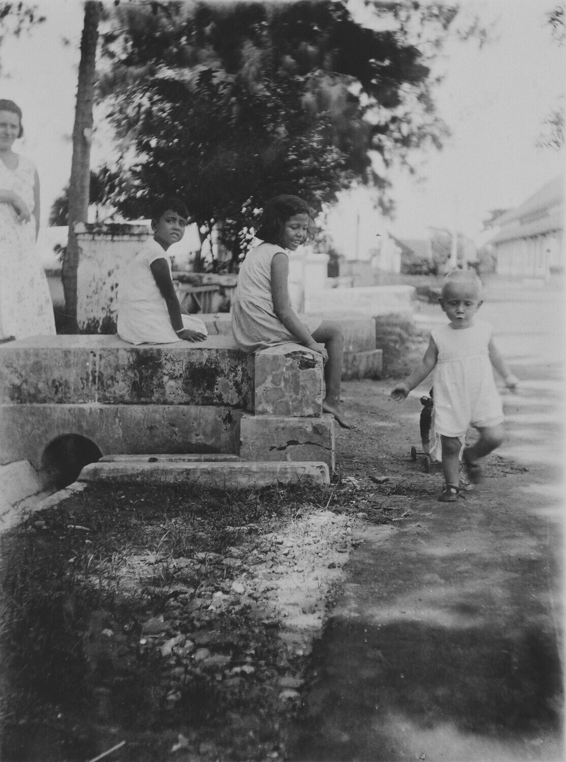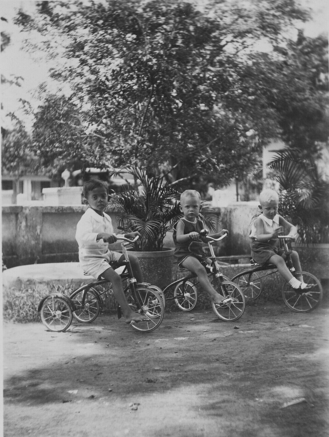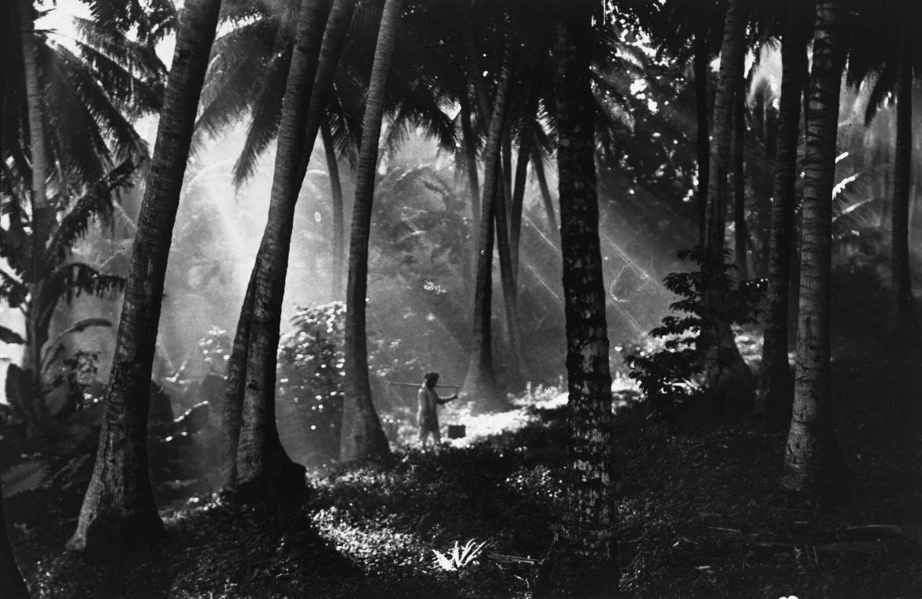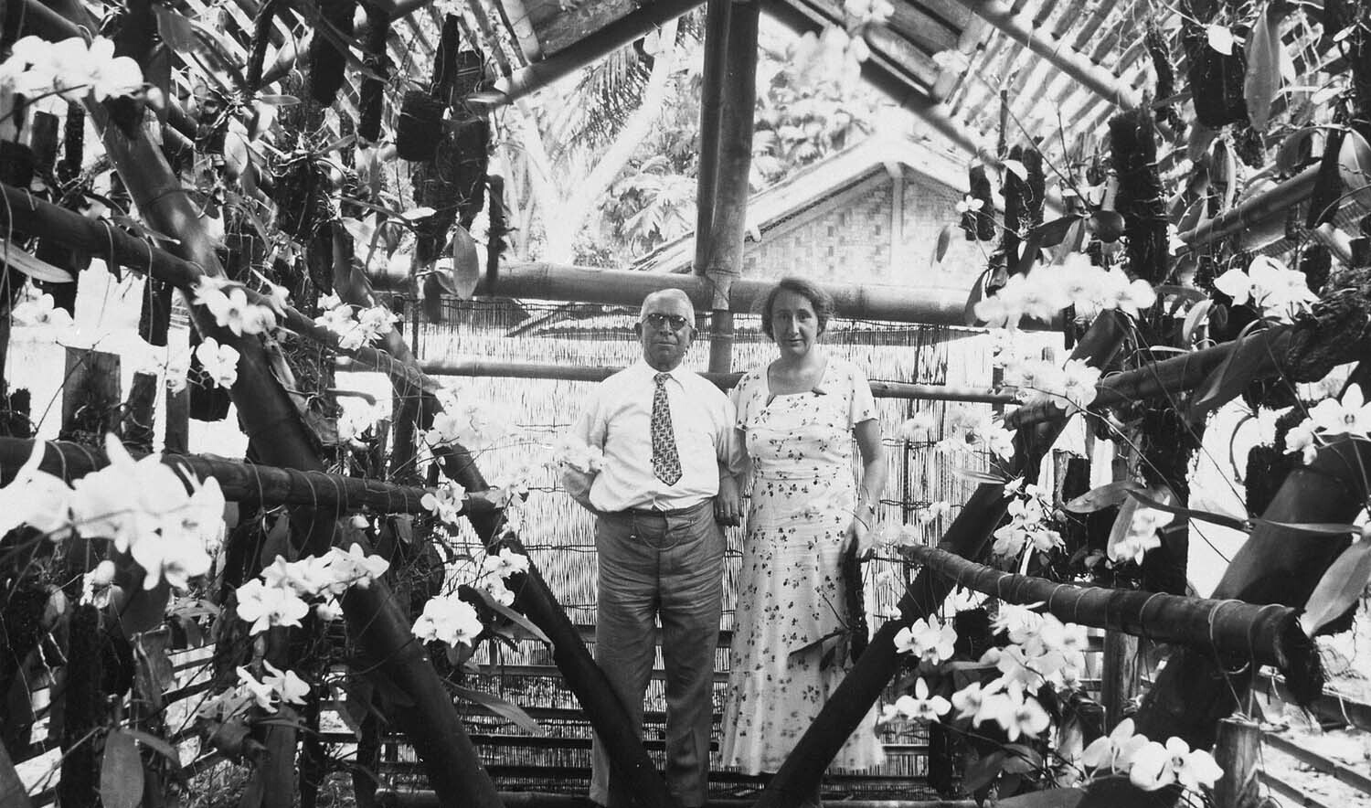 Weltevreden in de Plantentuin tusschen de kokospalmen.