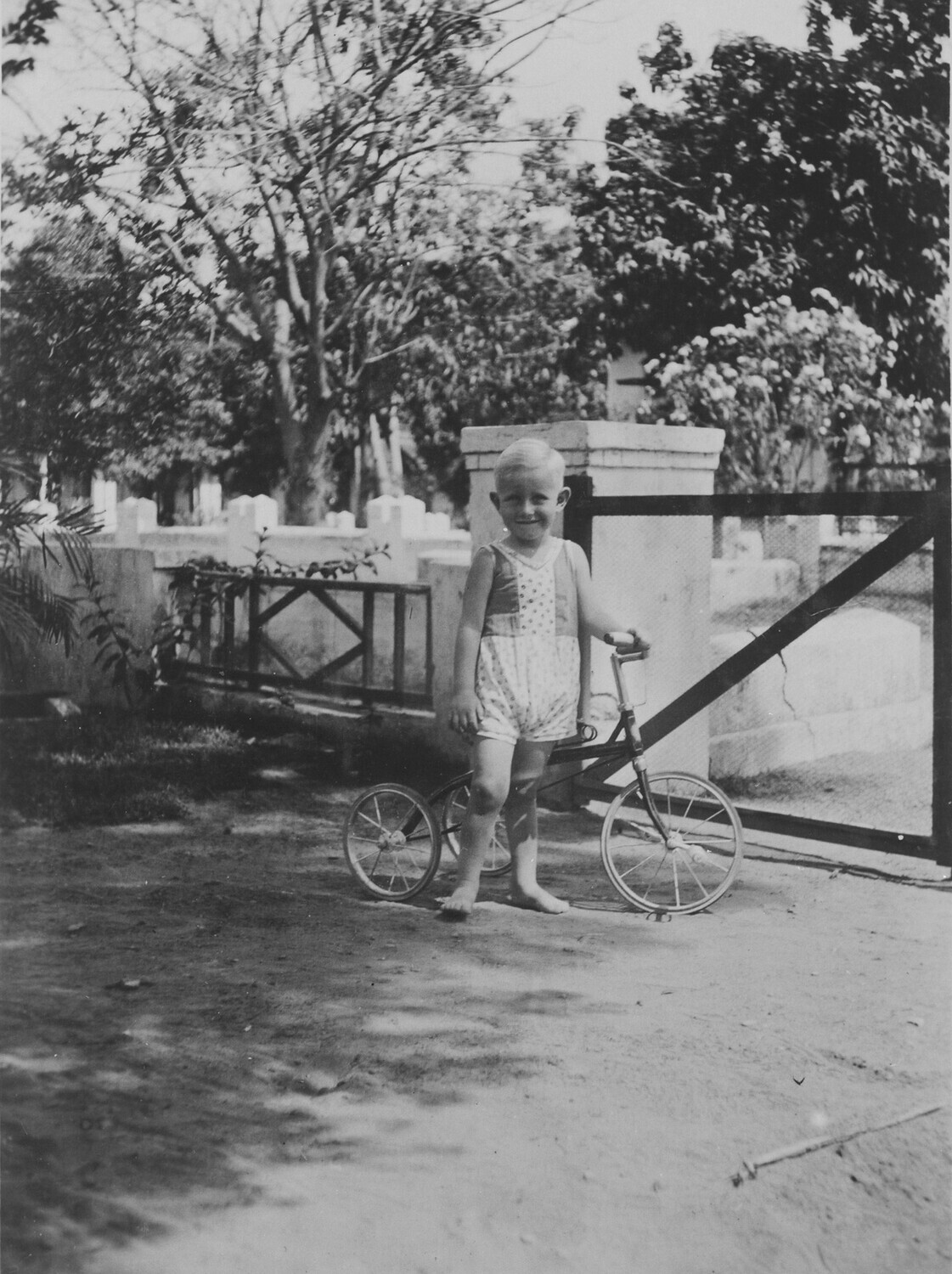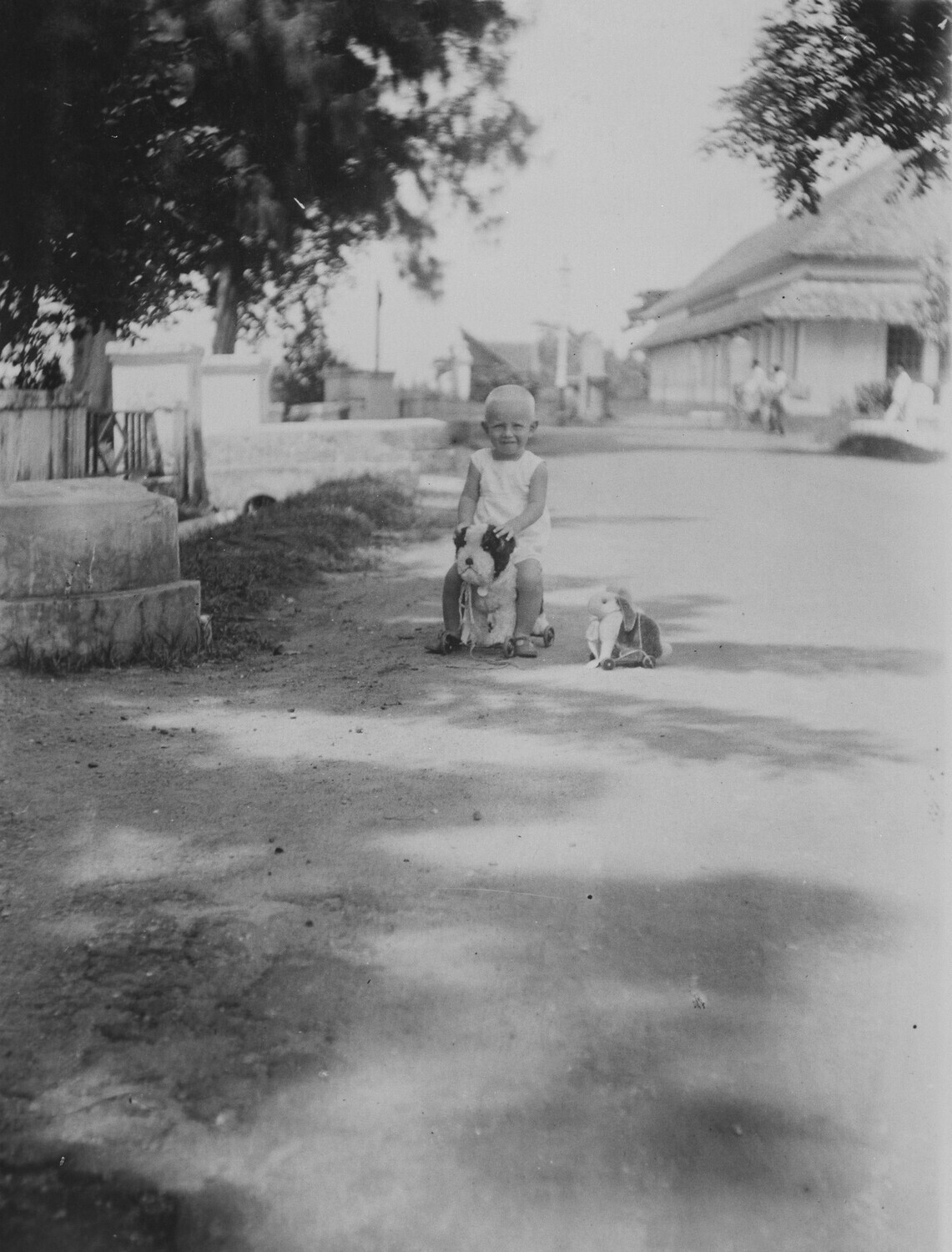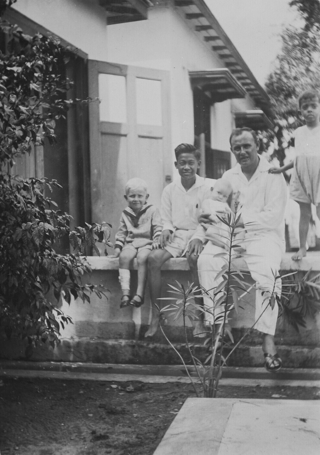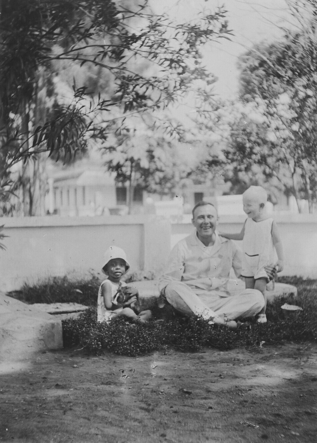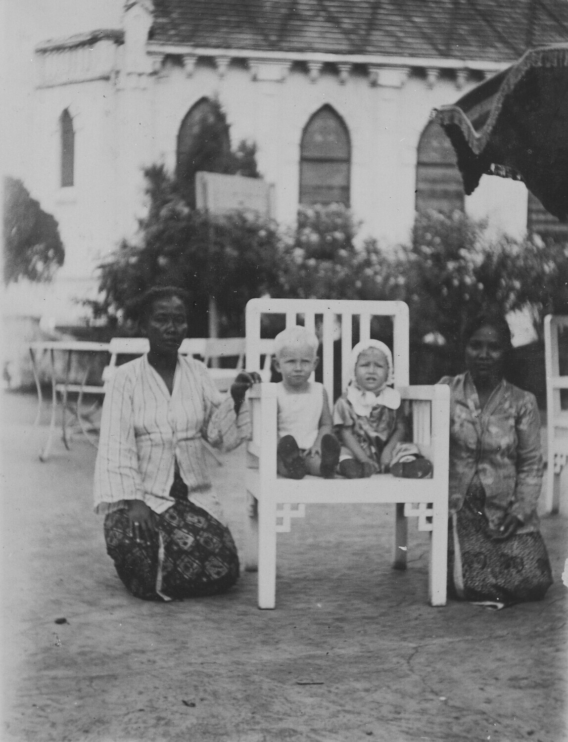 Weltevreden in de Plantentuin tusschen de kokospalmen.