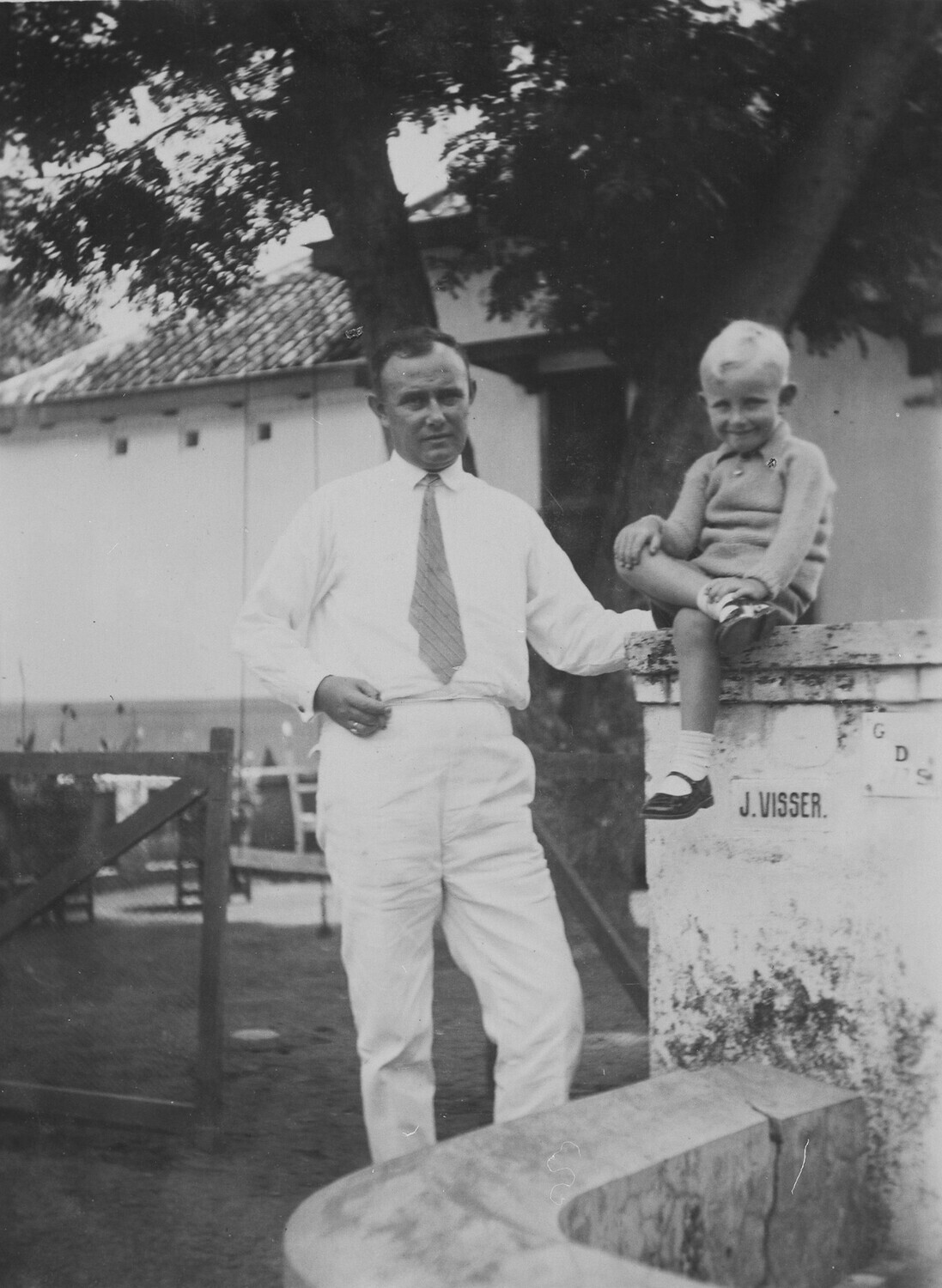 Vader, mogelijk J. Visser zelf, en zoon poseren bij ...