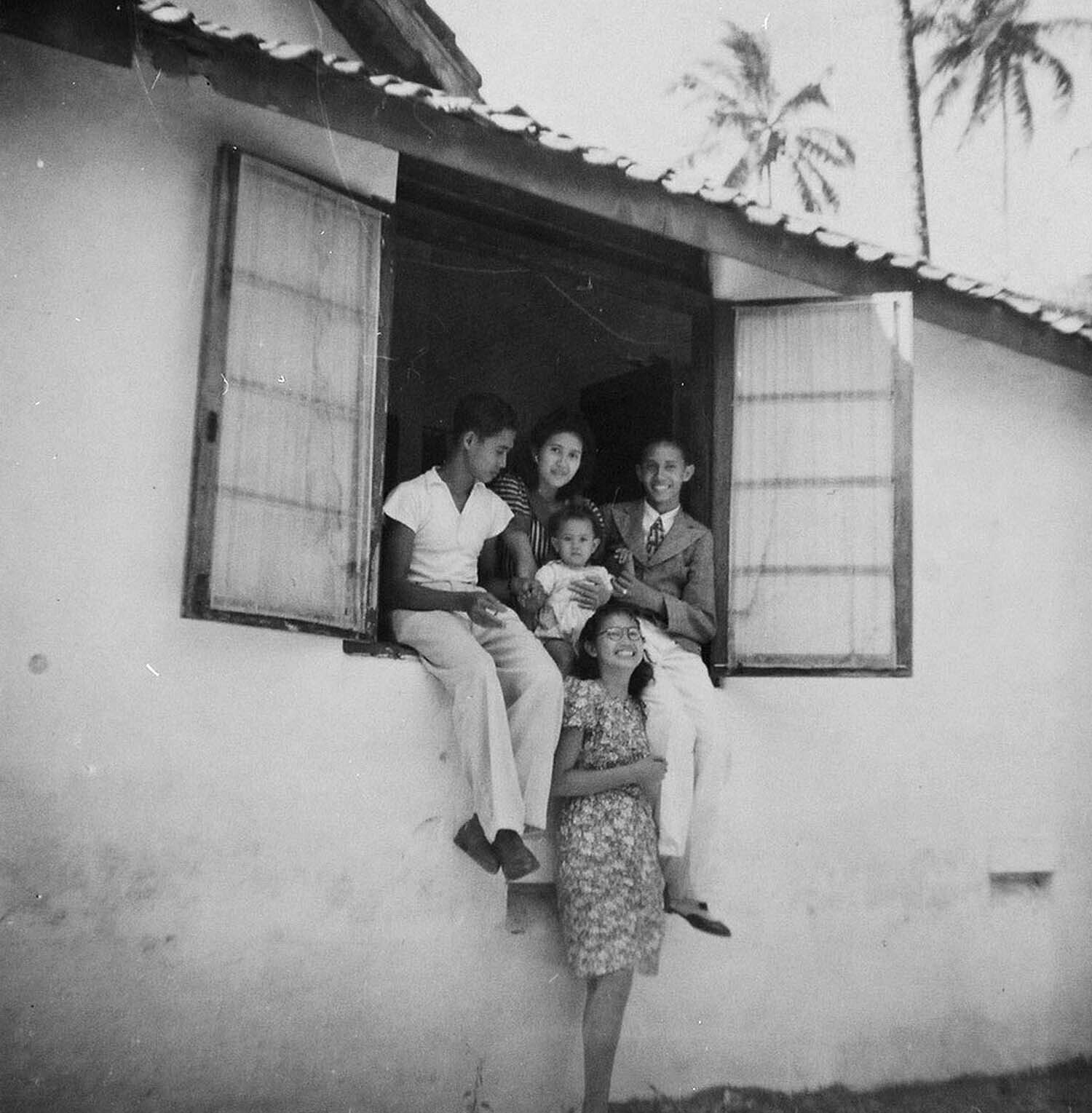 Opname van een pagina met vijf foto's uit een famili...