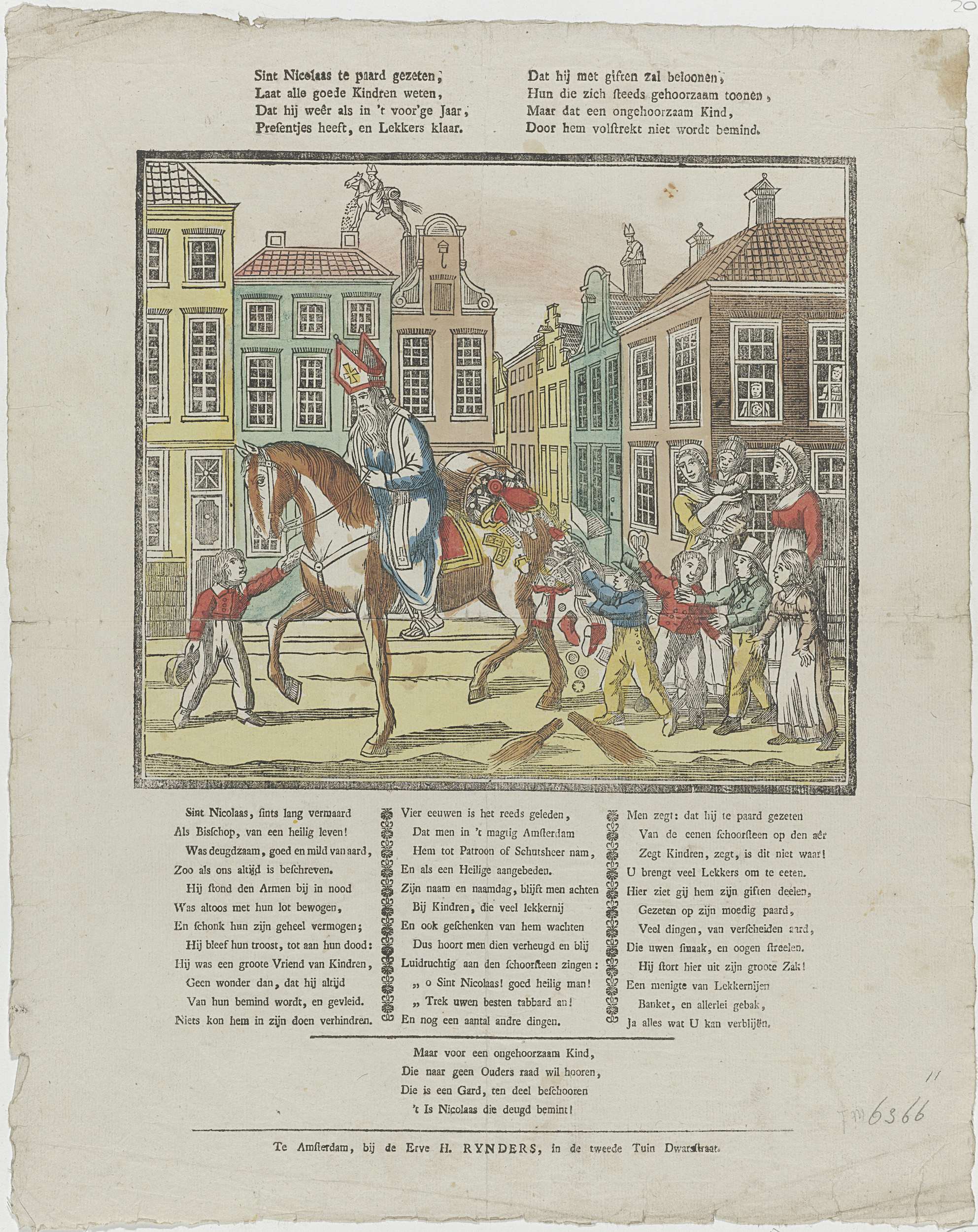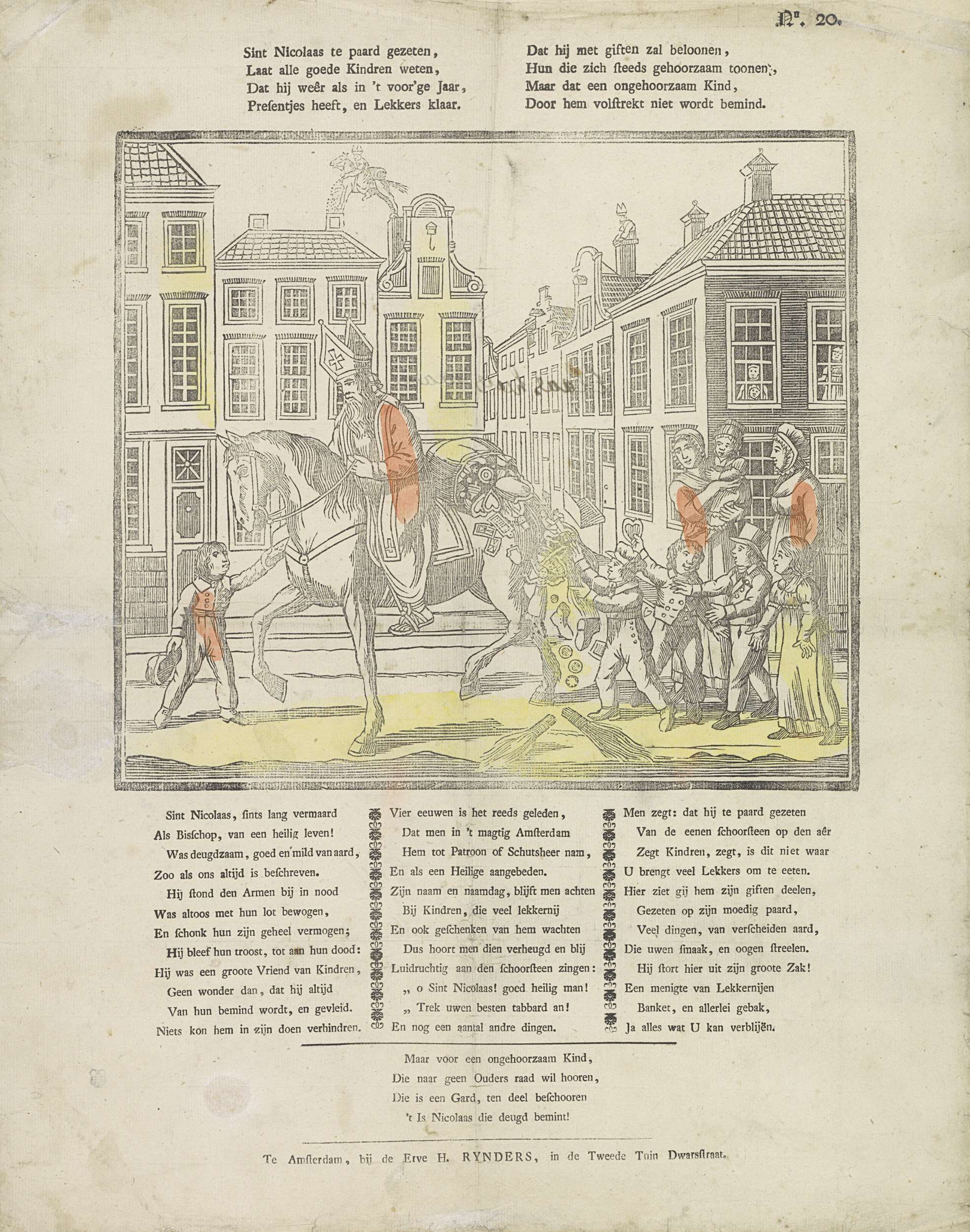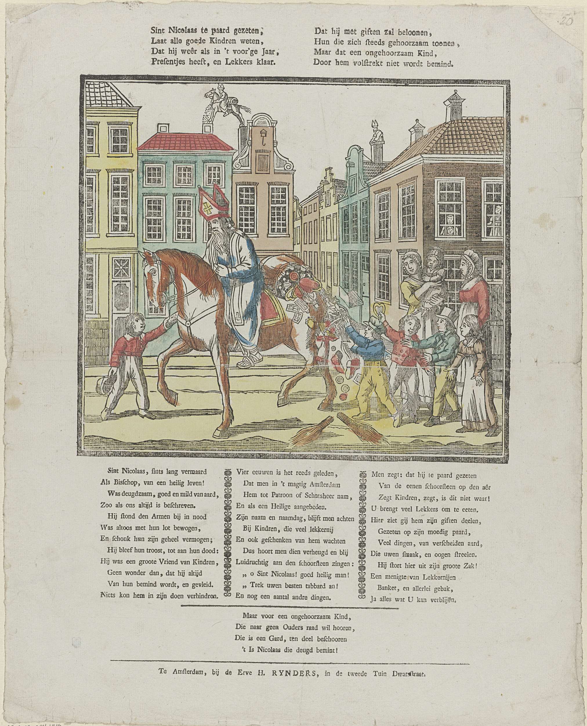 Sint Nicolaas te paard gezeten, / Laat alle goede ki...