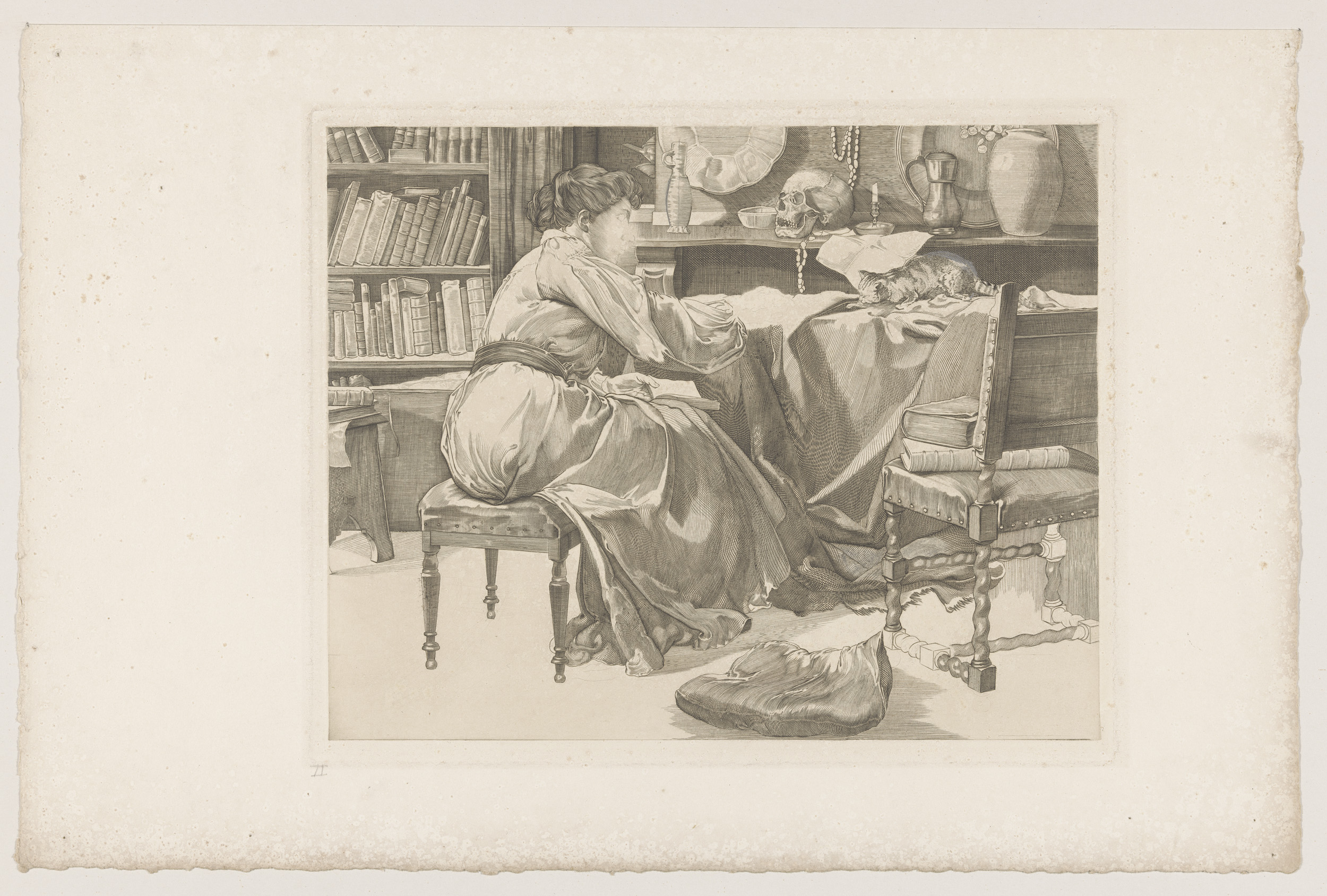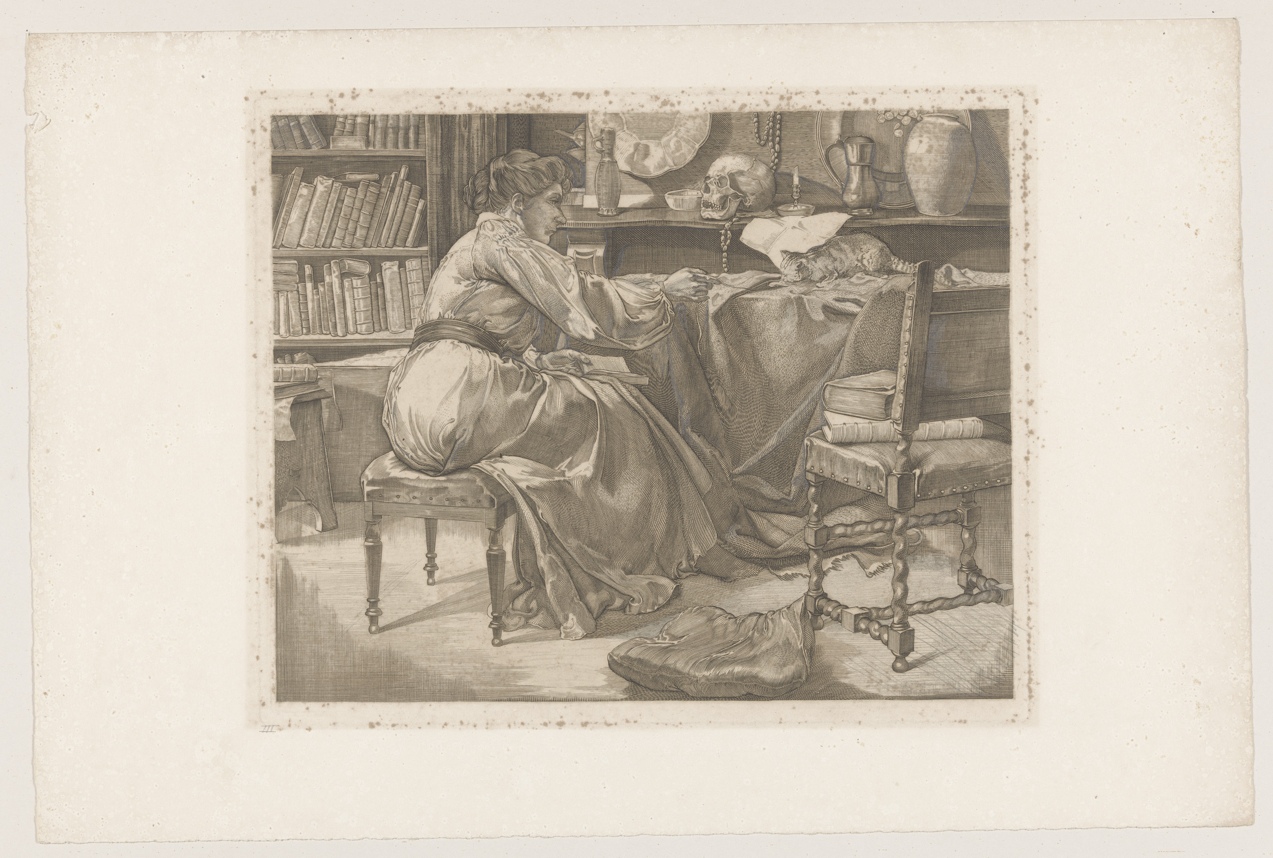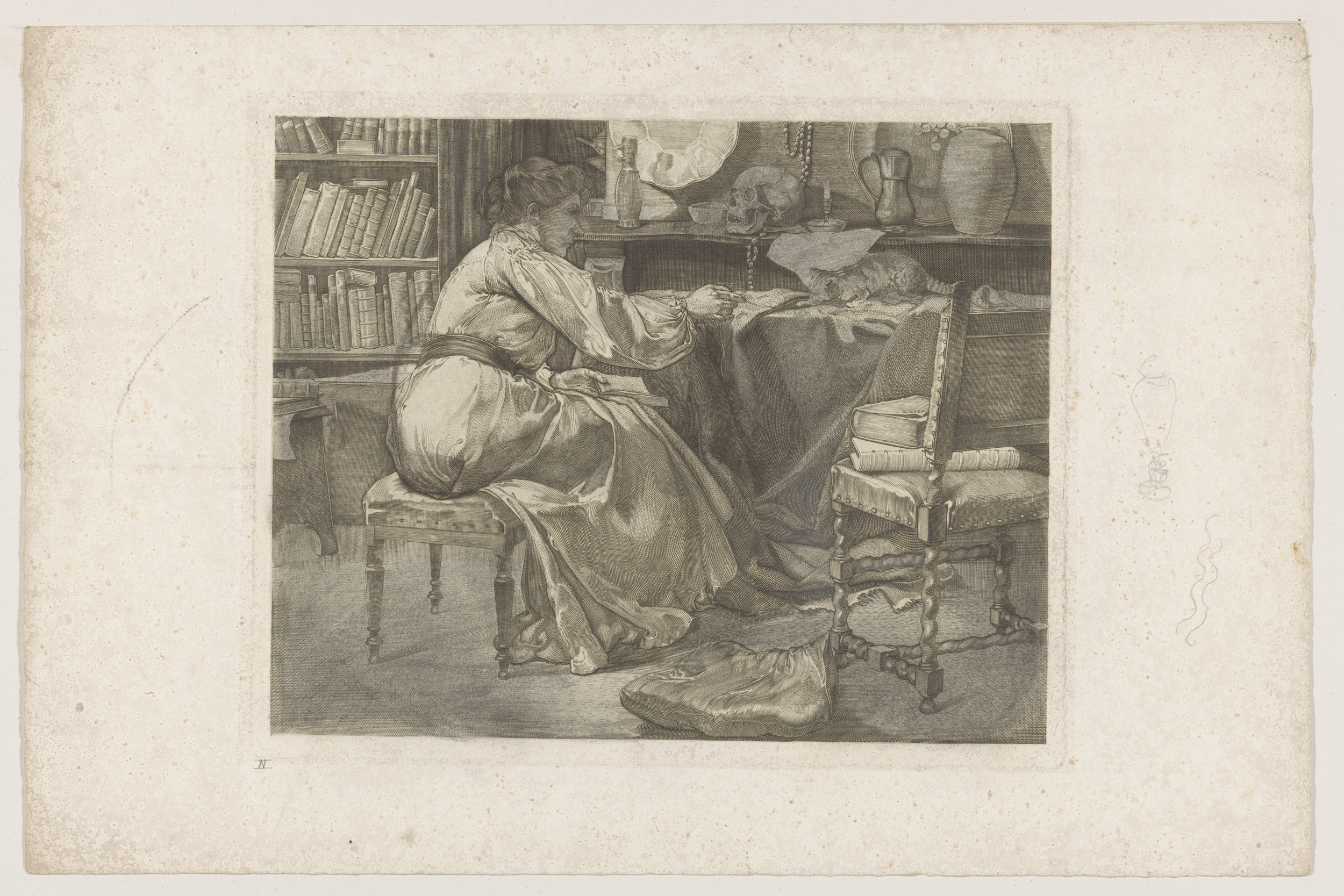 Vrouw en kat in atelier