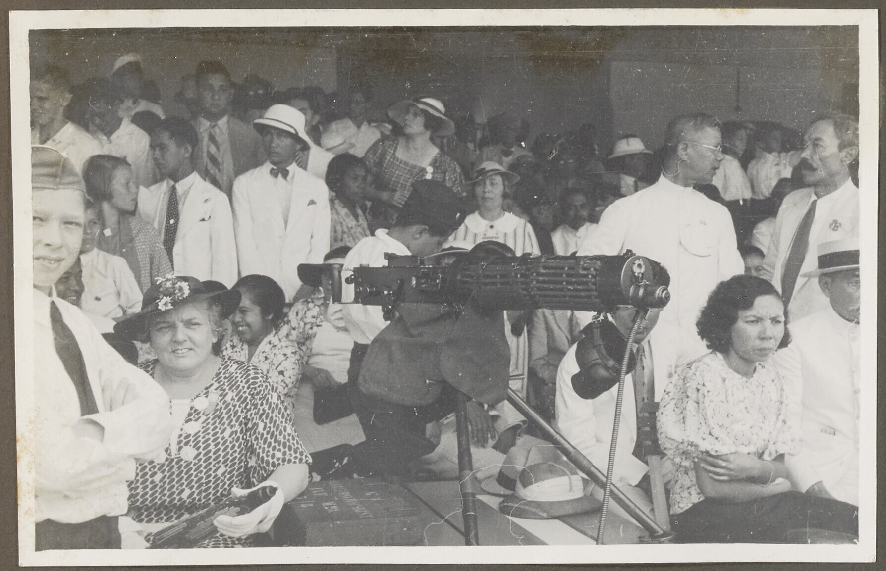 Machinegeweer tussen het publiek op de Oranjefeesten...