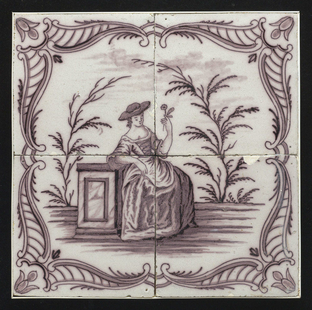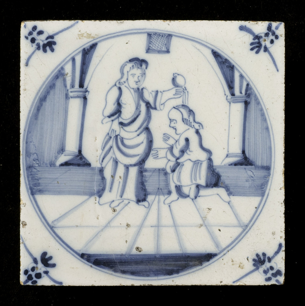 Tegel van aardewerk met tinglazuur voorstellende een...