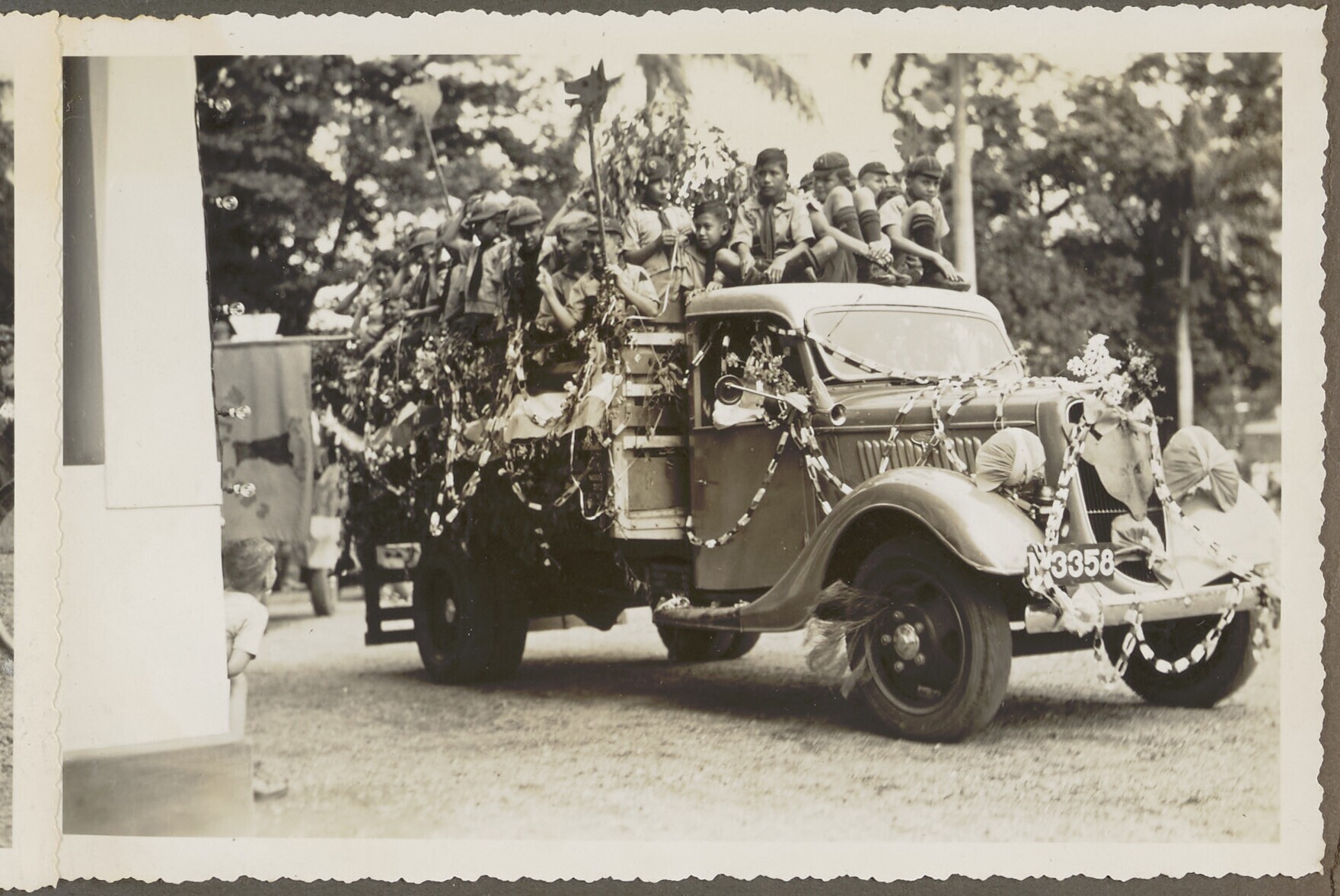 Kinderen van de scouting in een praalwagen tijdens d...