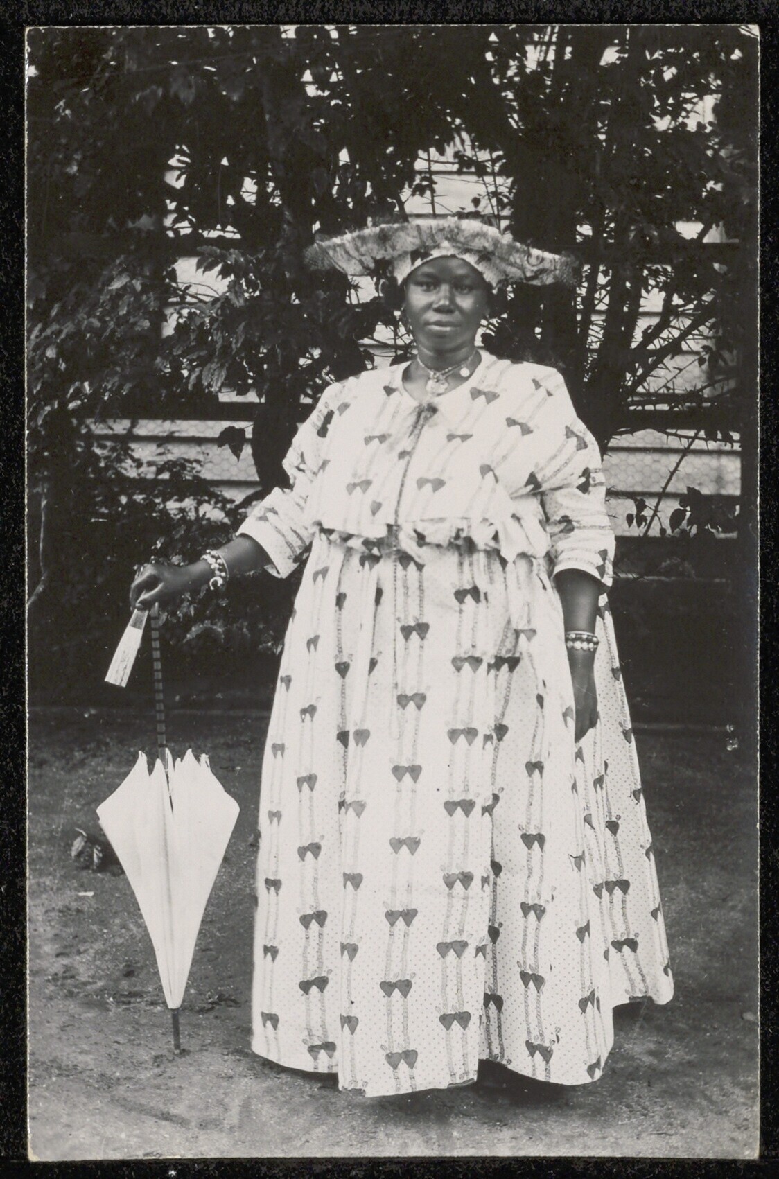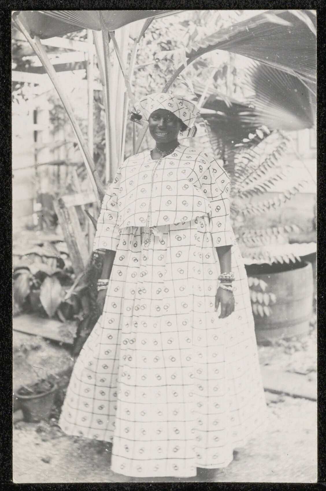 Portret van een Creoolse vrouw gekleed als kotomisi ...