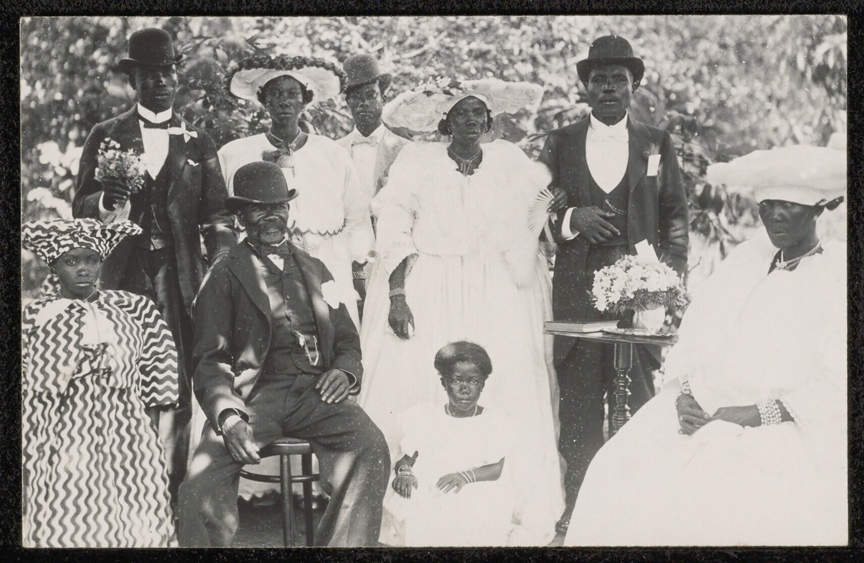 Familieportret tijdens een dubbele (?) Creoolse brui...