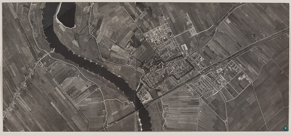 Luchtfoto, voorstellende Culemborg aan de Lek, ca.1960