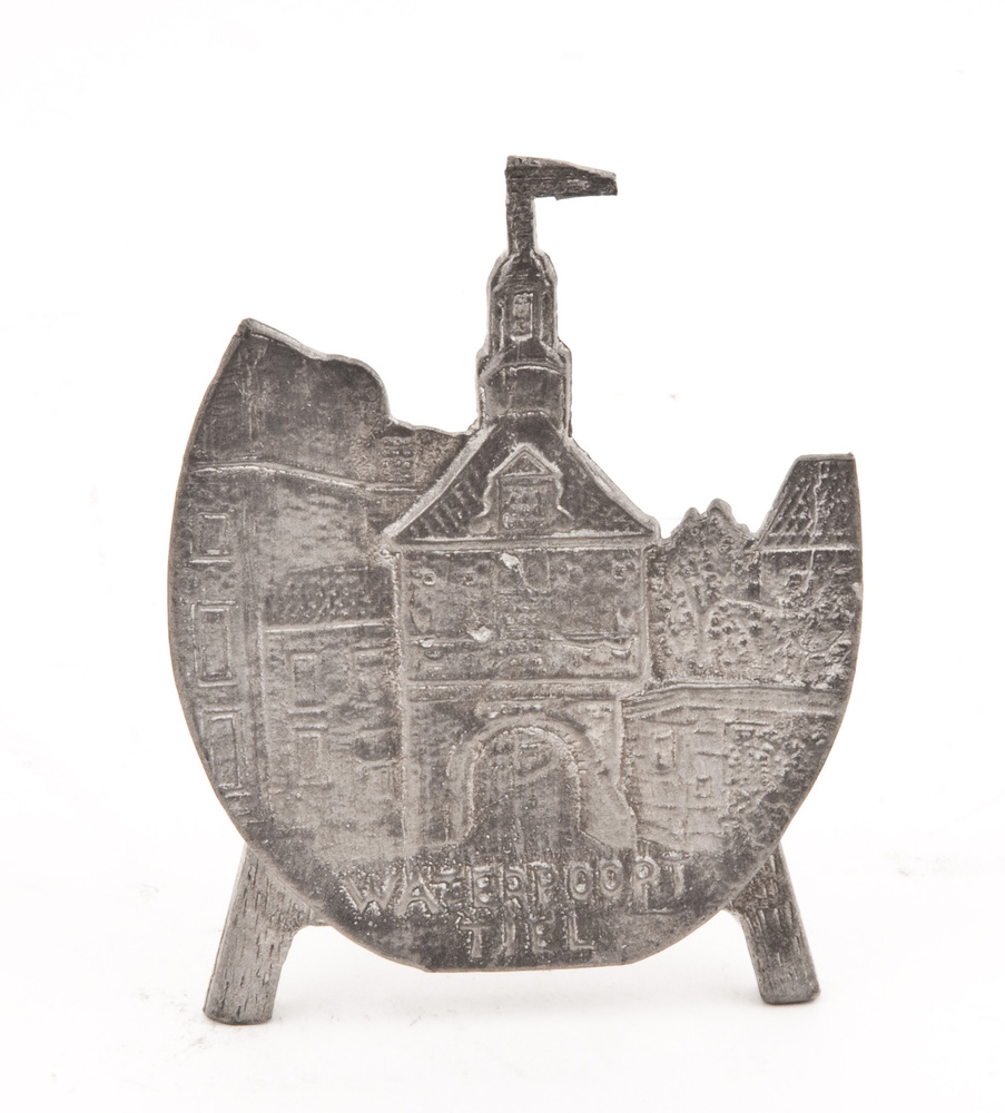 Standaard van tin met afbeelding van de Waterpoort t...