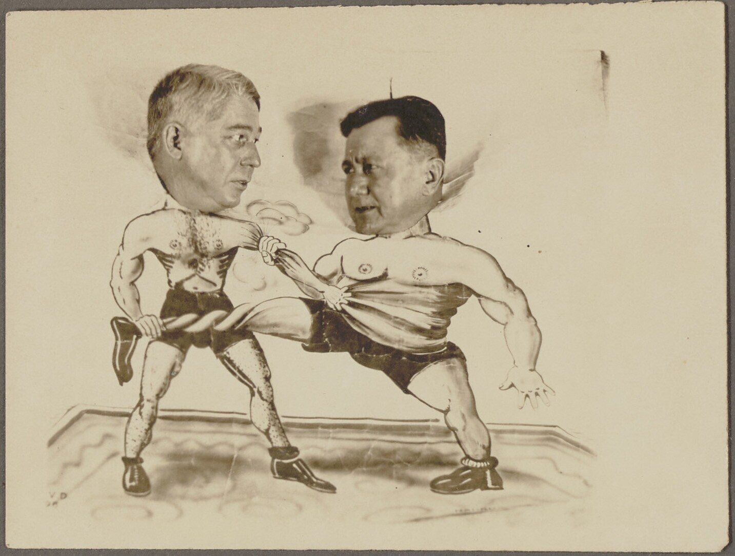 Karikatuur van twee mannen in gevecht