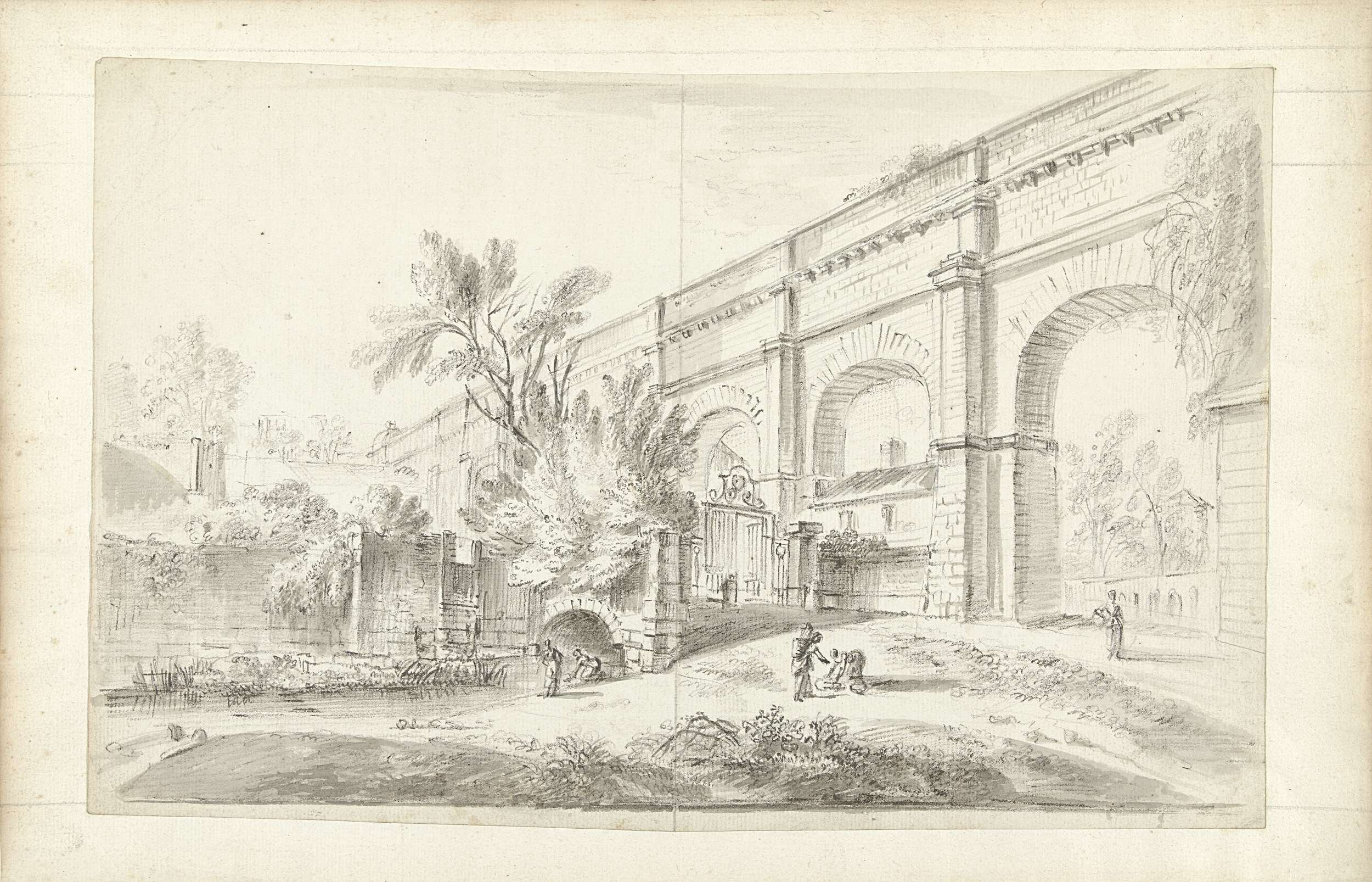 View of the aqueduct of Arcueil with figures